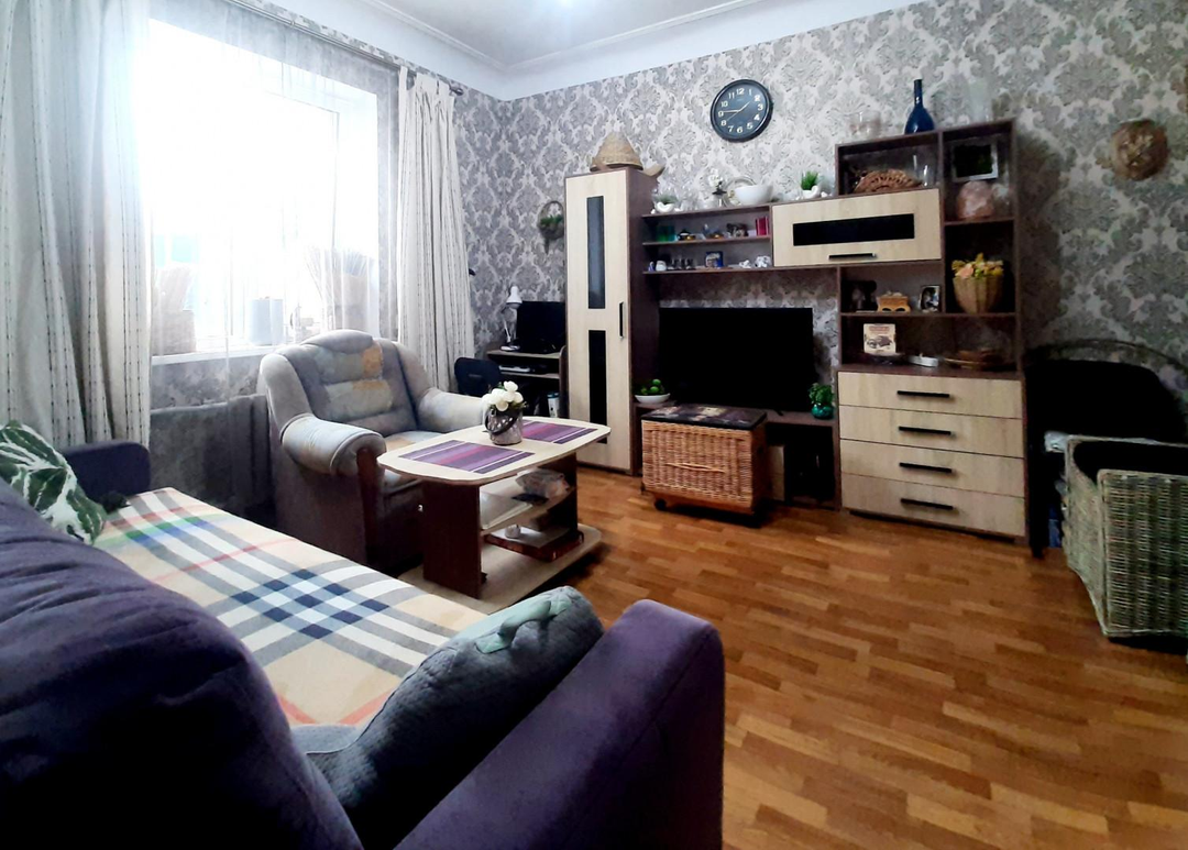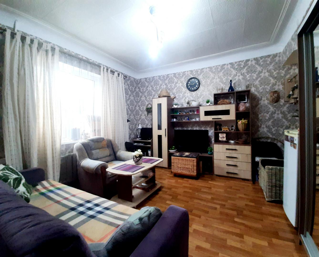 Двухкомнатная квартира 30.8 кв м (евро-двушка), в доме коридорного типа, на втором этаже трёхэтажного дома. Кухня-гостиная 13.8 кв м, комната 17 кв м. Коммуникации центральные- отопление, вода холодная и горячая, электроснабжение. Сделан косметический ремонт, проводилась замена электропроводки и труб водоснабжения и водоотведения, вода и канализация заведены в квартиру. Места общего пользования ( душевая и санузел) в очень хорошем состоянии. Во дворе есть зона отдыха ( стол с лавками и мангал), двор большой, есть место для парковки автомобиля.