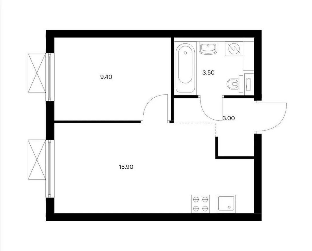 Удачная планировка: просторная кухня-гостиная, 1 изолированная комната