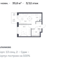 В ЖК "АЛХИМОВО" продается уютная и просторная квартира евро двушка (2‑комнатная квартира типа 2Е) с кладовкой.