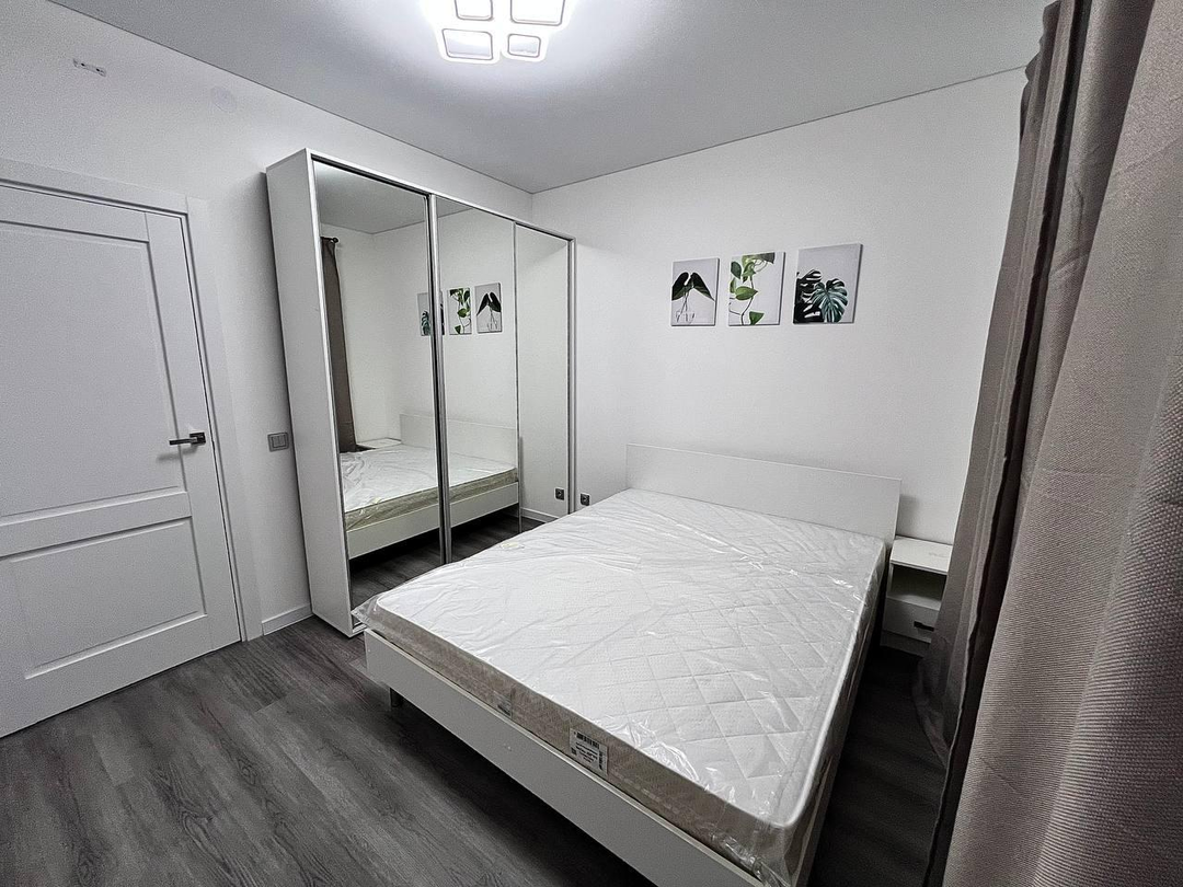 Спальня: двуспальная кровать, шкаф с дверьми купе, также покупали тумбу-комод