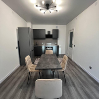 Кухня: кухонный гарнитур, духовка, варочная панель, вытяжка, холодильник, обеденный стол. В декабре купили удобный, раскладной диван с ящиками для хранения вещей.