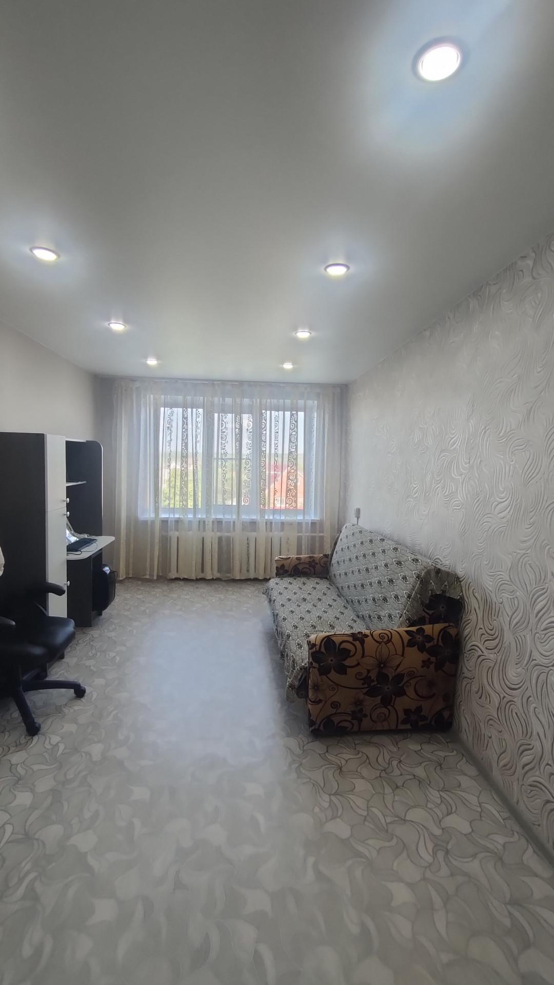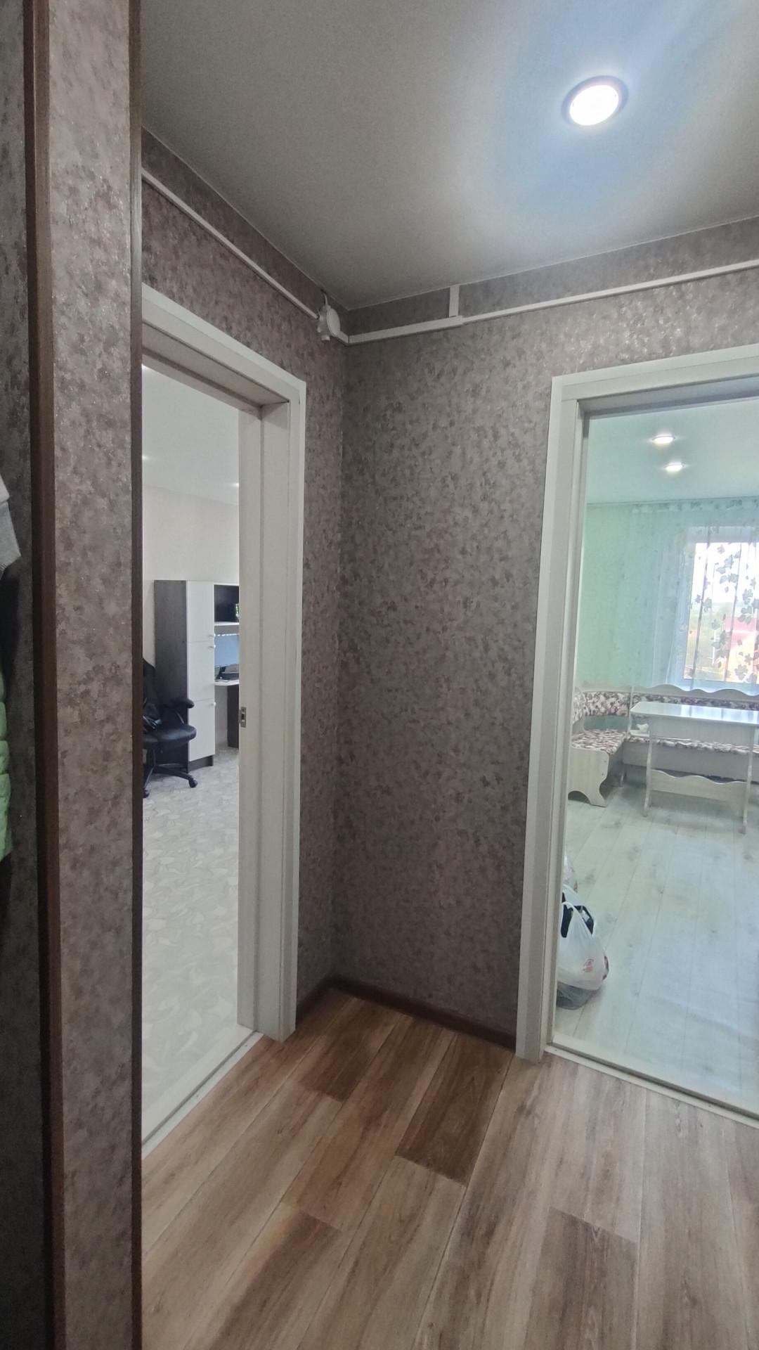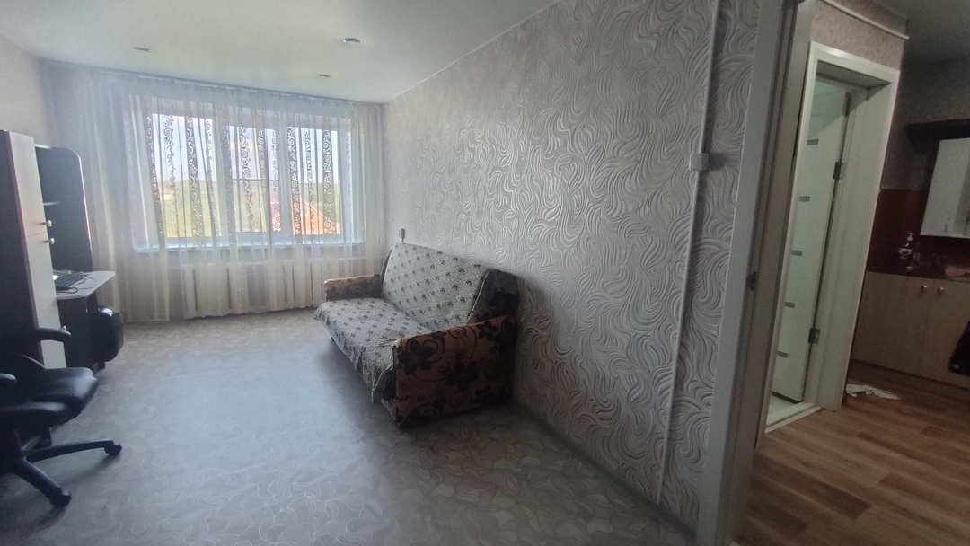 Квартира с большой площадью целых 36,8 кв.м. , имеет две комнаты площадью 19,1кв.м и 12,1 кв.м., санузел , место под кухню . Вид из окна красивый, на частные дома.