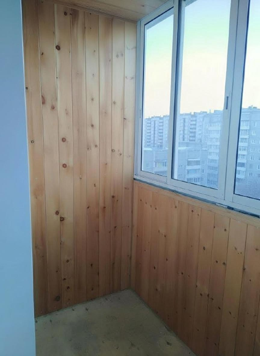 Уютный балкон. Балкон утеплен и обшит деревом – это не просто место для хранения, а полноценное дополнительное пространство, где можно устроить зону отдыха или небольшой кабинет.