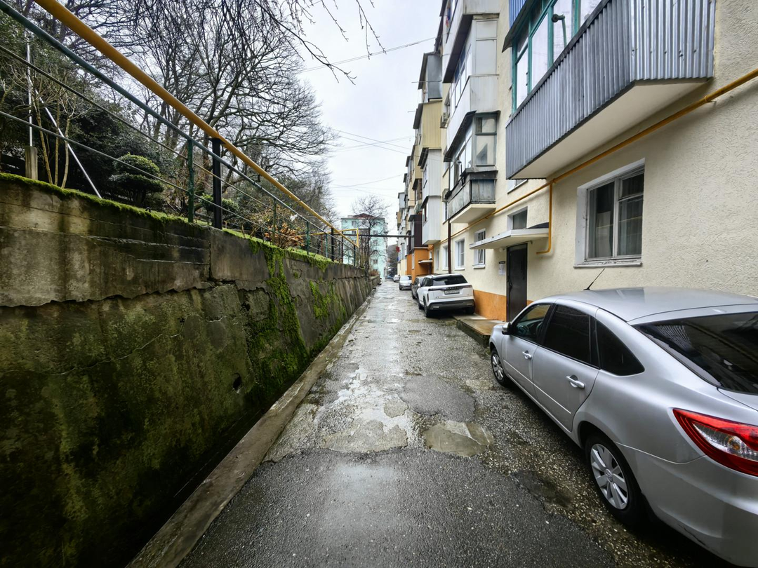 Окна выходят на улицу, парковка во дворе.