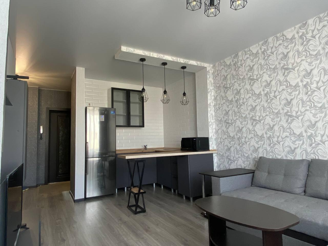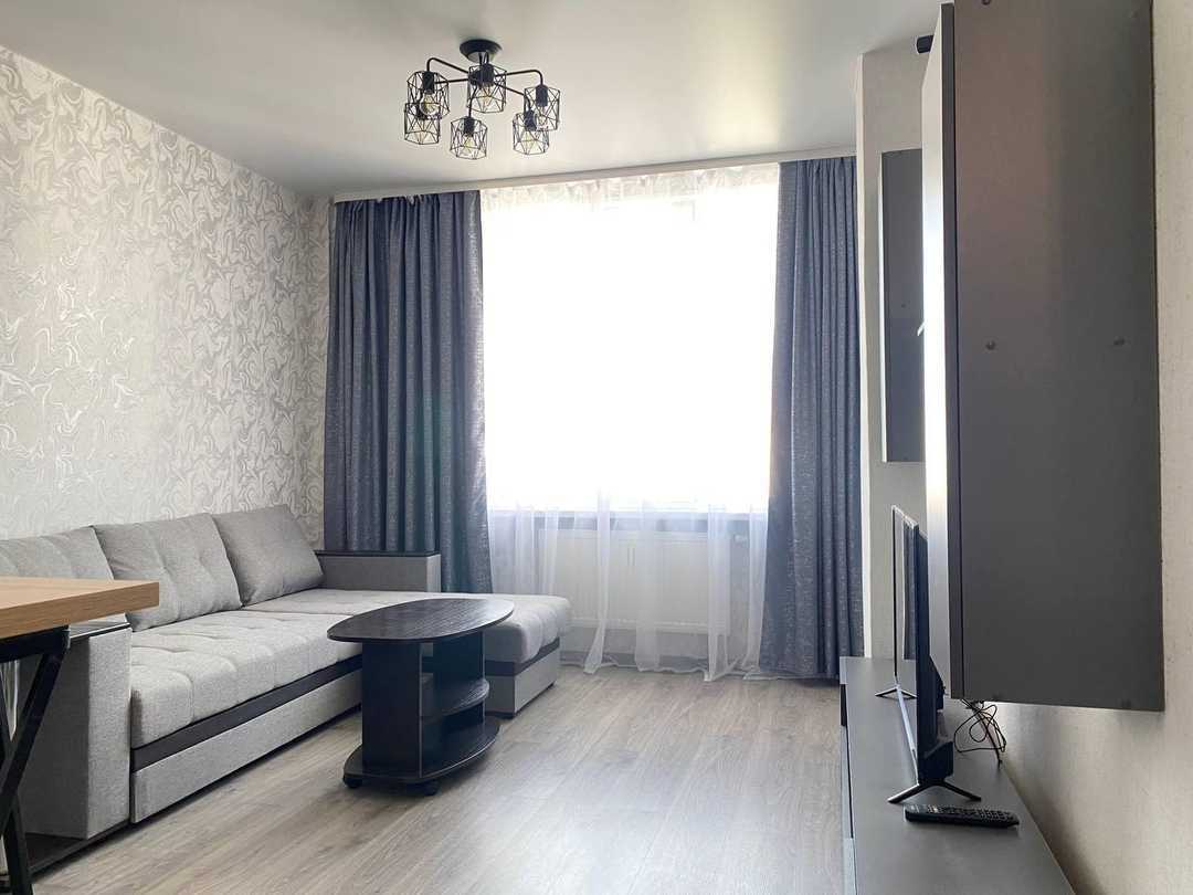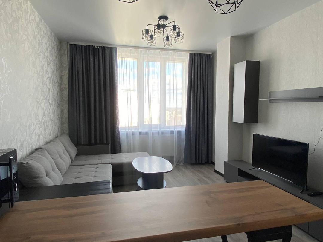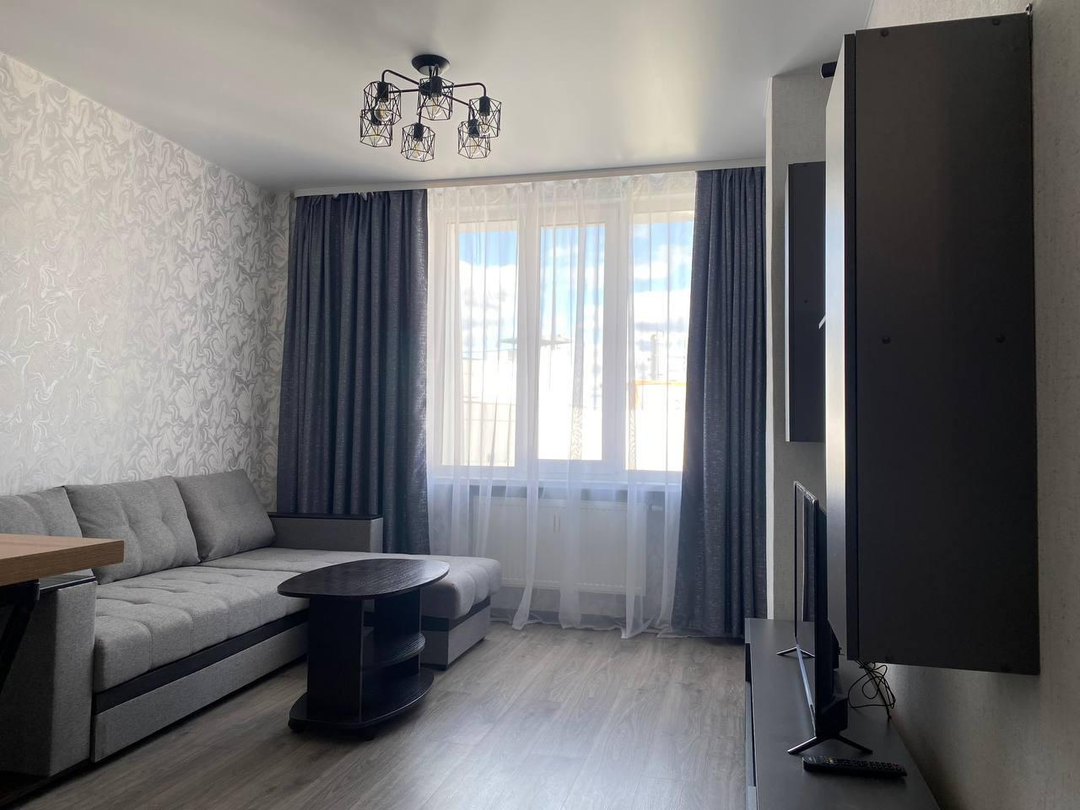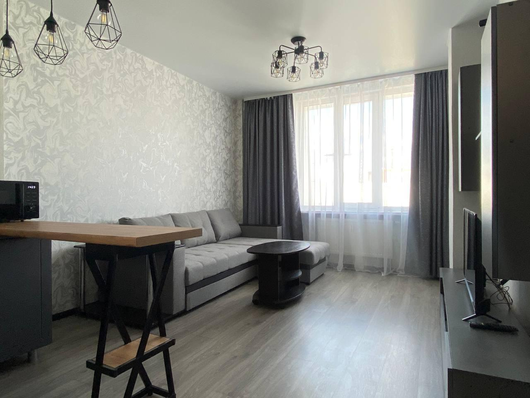 Просторная планировка включает в себя отдельную спальню, объединённую кухню-гостиную, удобную гардеробную комнату и просторный балкон.