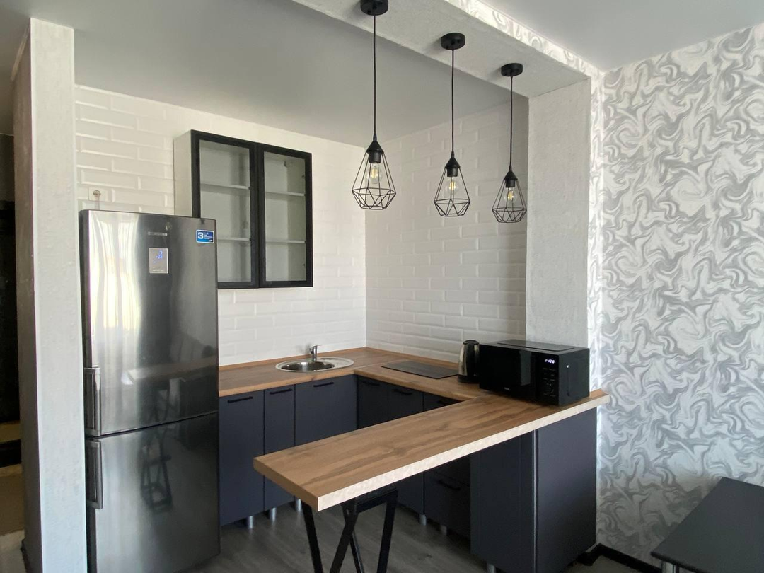 Преимущества: Большая светлая комната с балконом; Функциональная кухня Удобная зона отдыха и приёма гостей; Уединение и спокойствие вдали от городского шума; Дополнительное пространство на балконе для отдыха и вдохновения; Отдельная гардеробная позволяет забыть о нехватке места для хранения вещей.