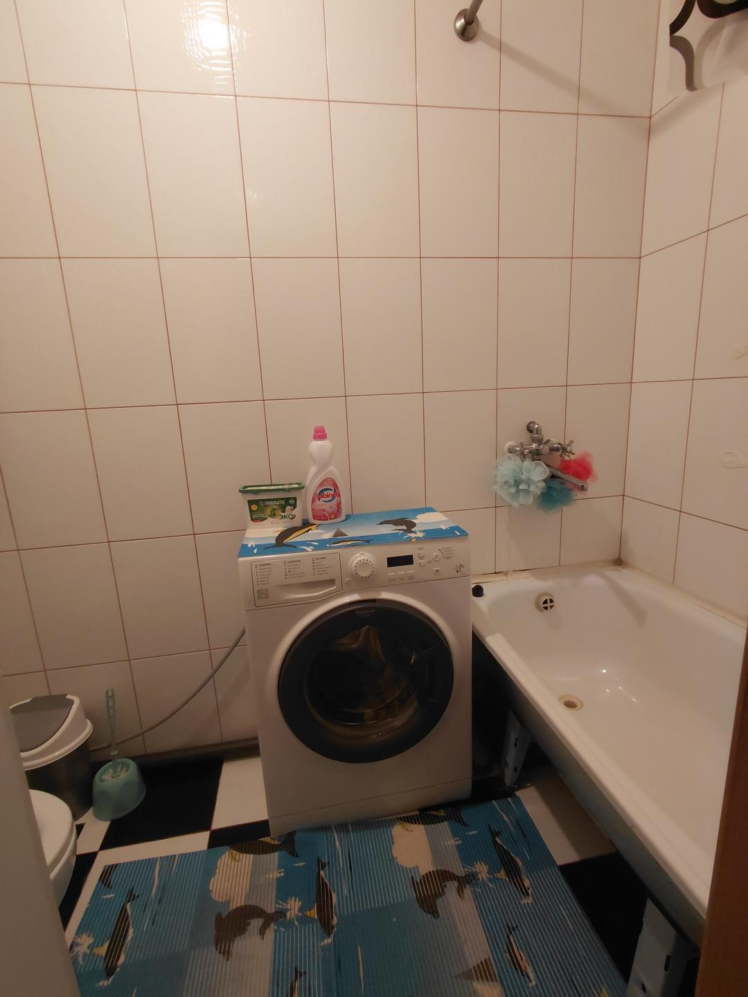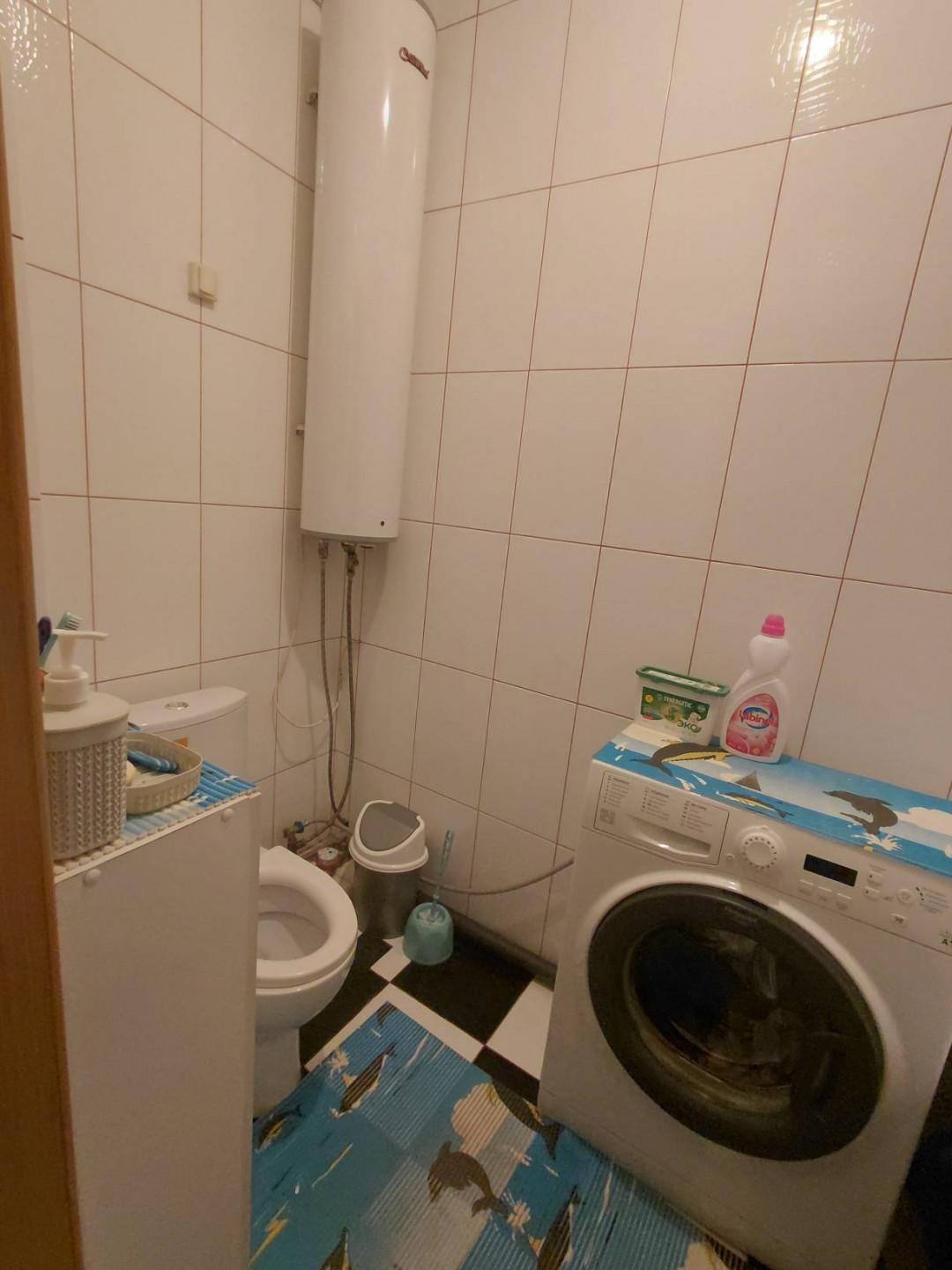 Санузел совмещенный в плитке. Установлен новый бойлер, обеспечивающий постоянное горячее водоснабжение.
