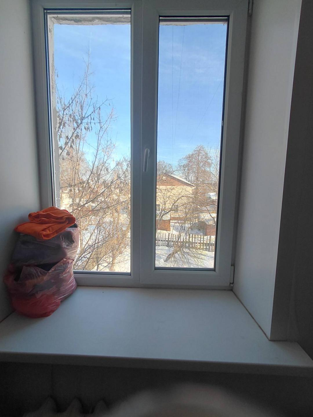 Окна заменены на новые ПВХ, установлены широкие подоконники, натяжные потолки в комнатах, напольное покрытие выполнено из линолеума.
