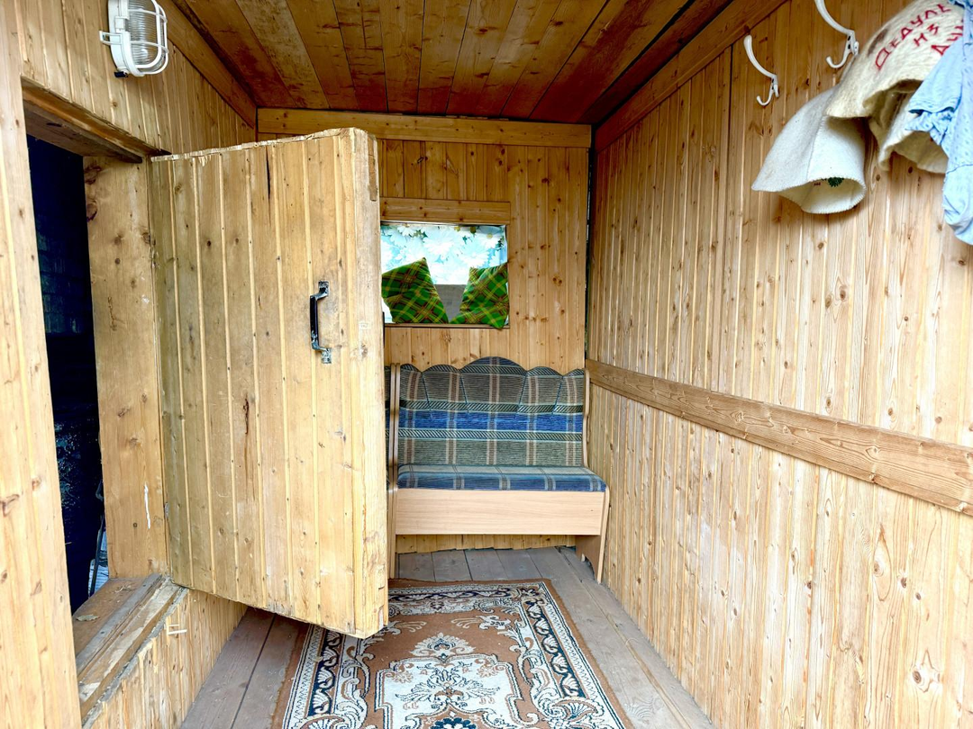 Площадь 38,5 м². Кухня – гостинная 20 м2 и комната 10м2. Состояние: хорошее — можно заехать и постепенно обновлять косметику. Пластиковые окна. Русская печь. Газ. Газовый котел. Центральное водоснабжение. 2 выгребные ямы.