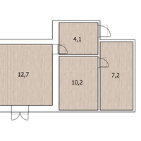 В квартире две комнаты, совмещенный санузел. Комнаты правильной прямоугольной формы, просторная кухня.
