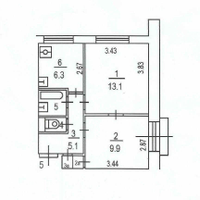 Выполнена отделка санузла с фpaнцузcкой ванной, произведена замена всех коммуникаций, стены под покраску, ровные полы, установлены качественные немецкие окна и новая входная дверь.