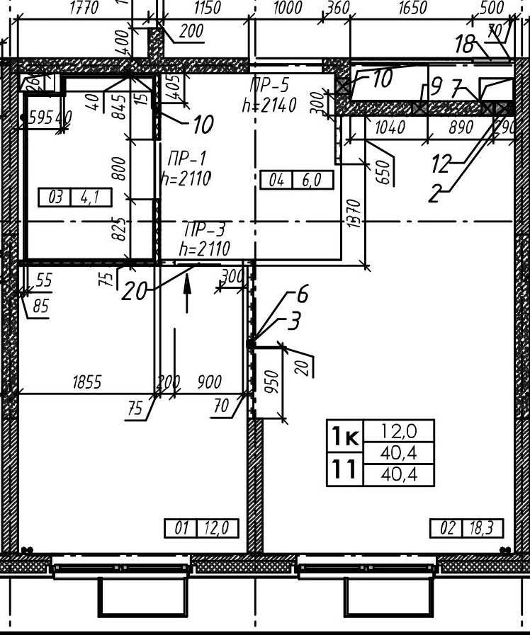 • Площадь кухни 18,1 м²