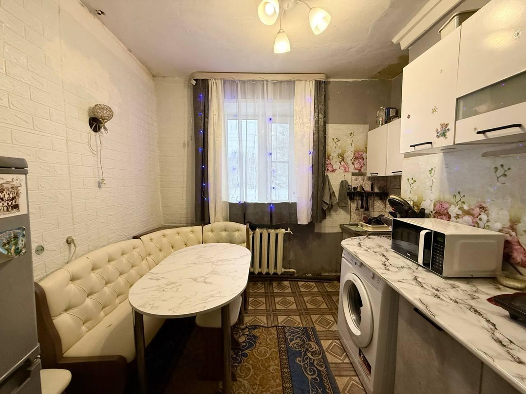 Основные характеристикиОбщая площадь: 39,8 м2.Количество комнат: 2 (проходные, возможна перепланировка в раздельные).Площадь комнат: 19 м2 и 12 м2.Кухня: 8 м2 (просторная).Санузел: совмещённый.Этаж : 1/2‑й в двухэтажном кирпичном доме.Окна: ПВХ, выходят на две стороны дома.