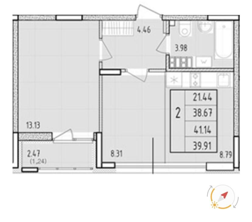 39,9 м²