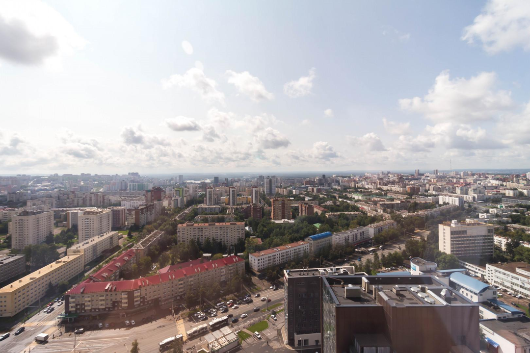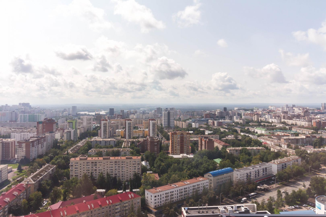 31 этаж - все виды на город ваши: Мечеть Ар Рахим, телецентр, река Белая.