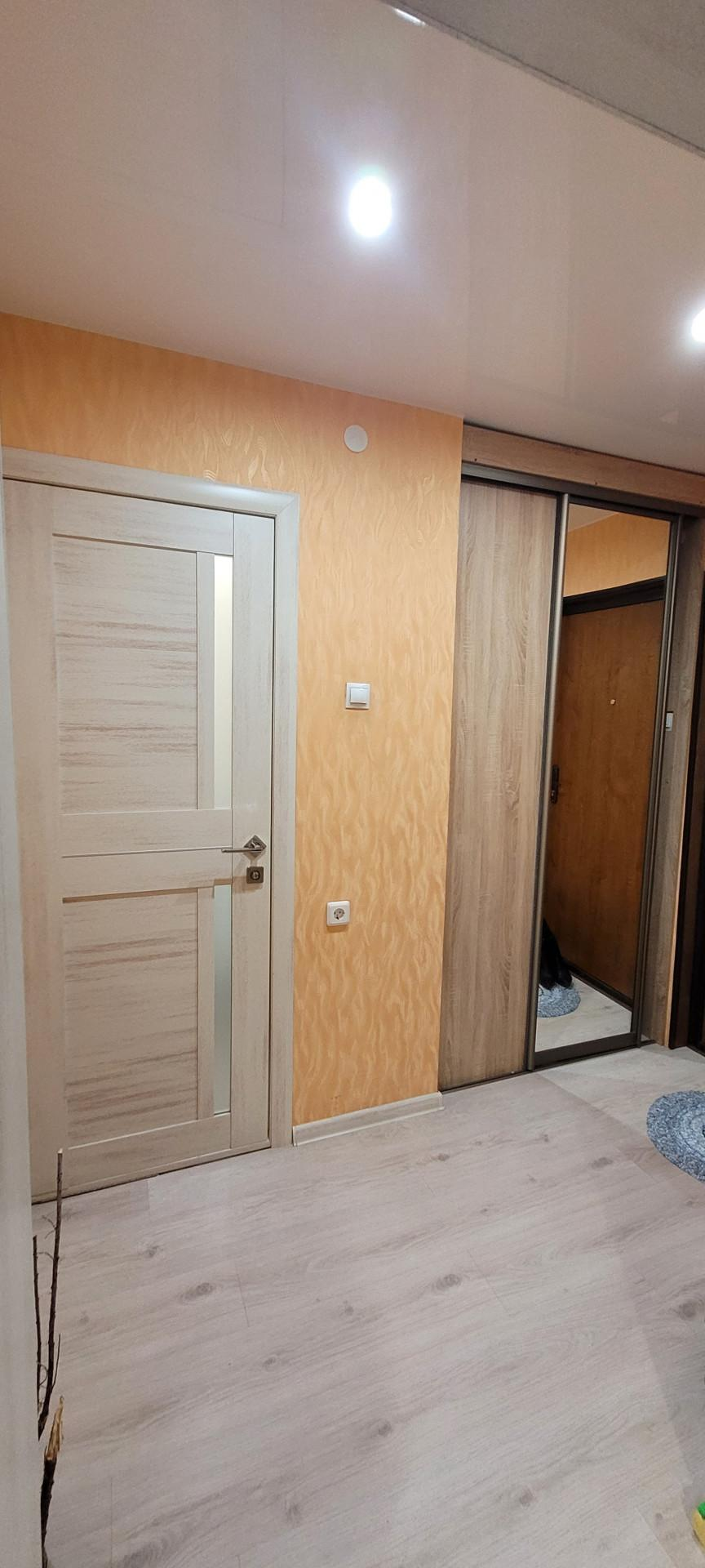 В спальной комнате встроенный шкаф-купе.