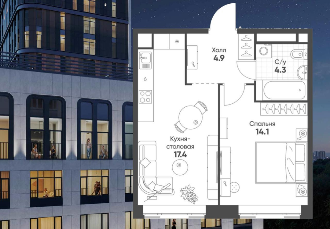 17,4 м²