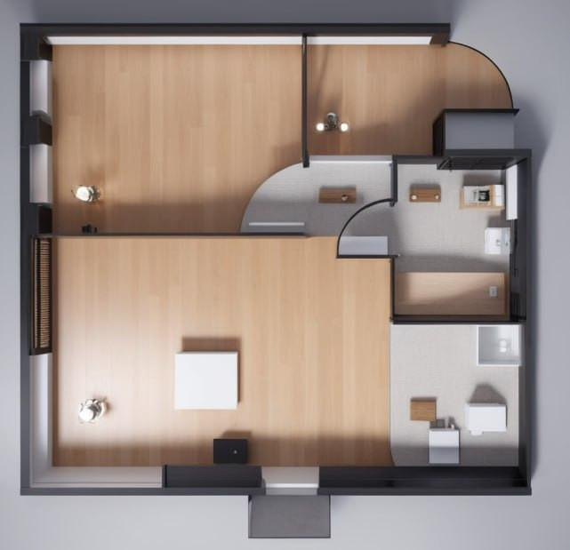 Общая информация:Площадь: 40,8 Этаж: 4Планировка: Спальня, кухня-гостинная, санузел