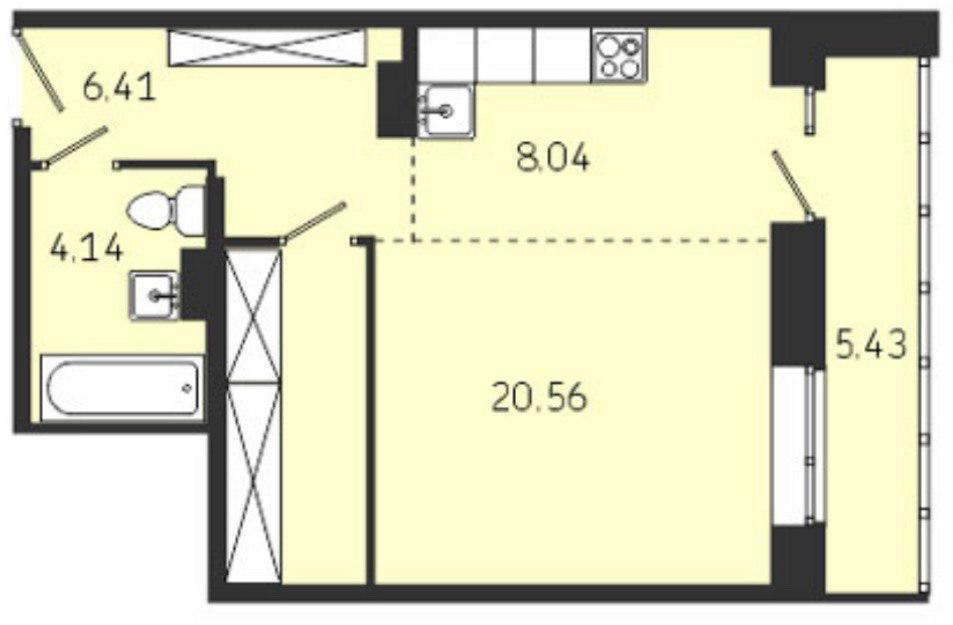 В продаже Видовая  однокомнатная квартира площадью 33 кв.м, расположенная на седьмом этаже.