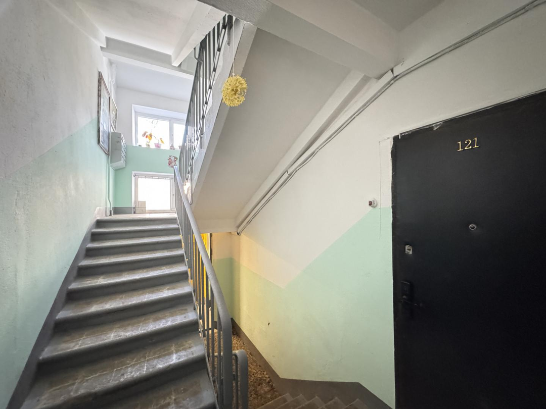 Чистый подъезд, хорошие соседи. Из окна открывается живописный вид на озелененный двор.