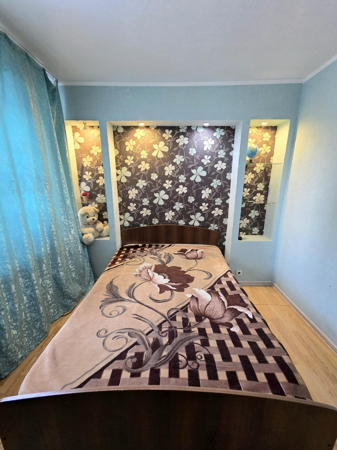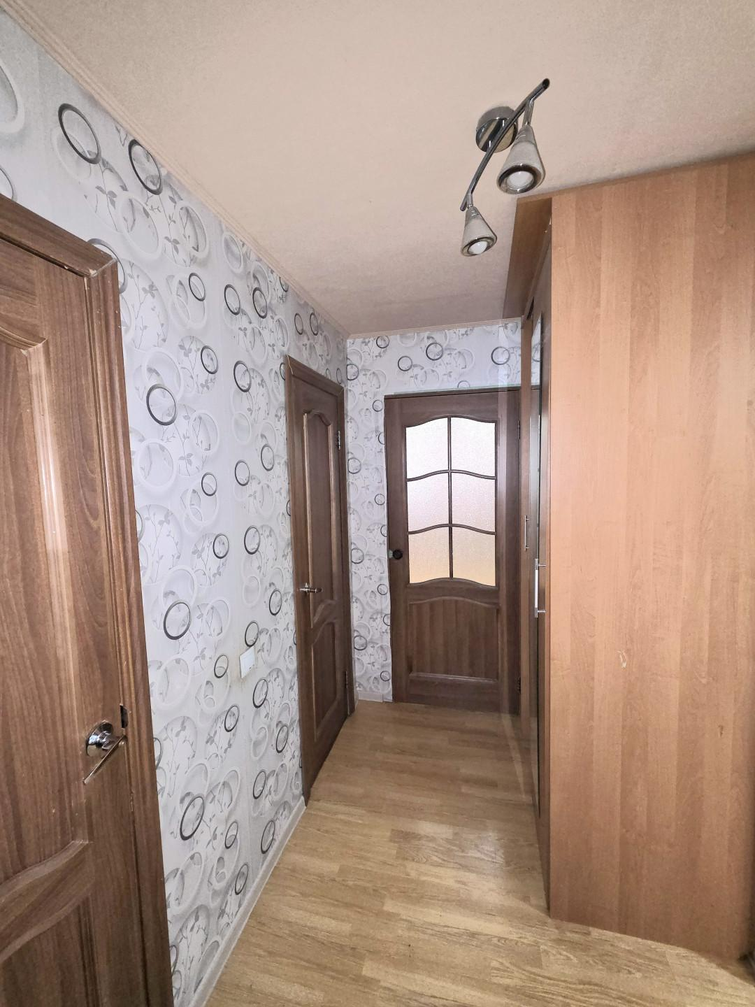 Очень удобная планировка квартиры - распашонка, комнаты расположены по обе стороны от коридора, очень удобно, что окна выходят на противоположные стороны дома: одни во двор, другие на улицу. Огромное преимущество у кого есть дети школьного возраста, по обе стороны окон можно смотреть как ребенок направляется в школу, или идет из школу и гуляет во дворе. В одной из комнат есть застеклённая лоджия.