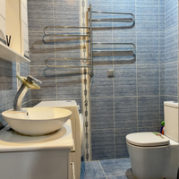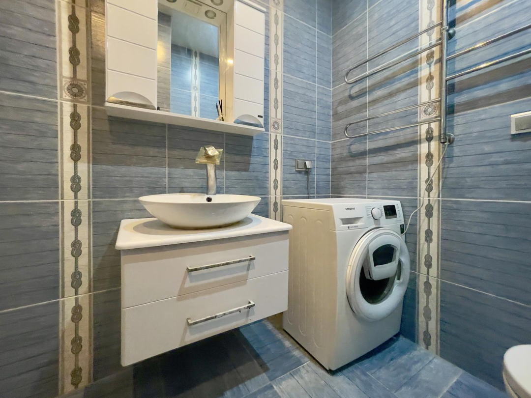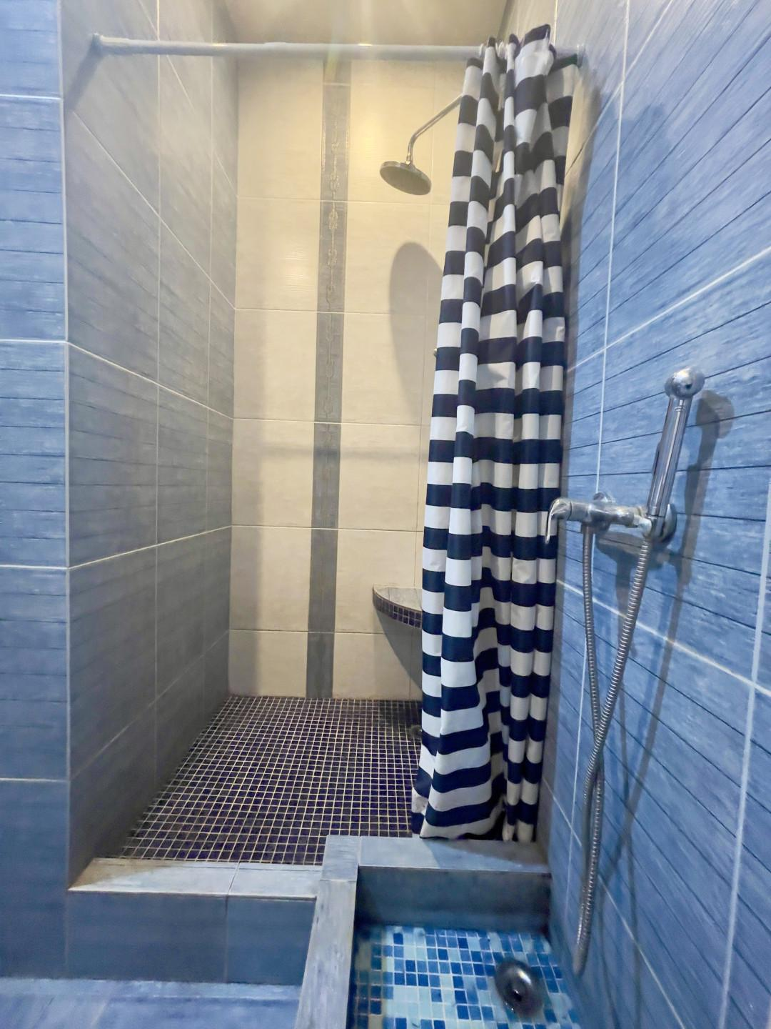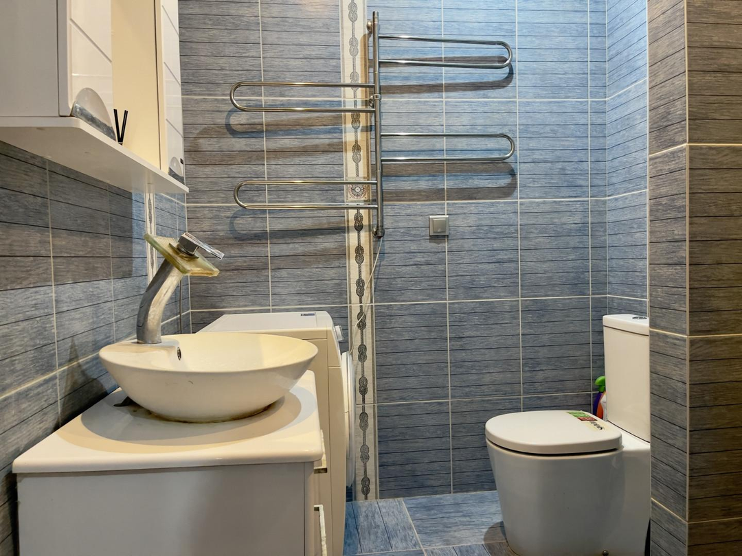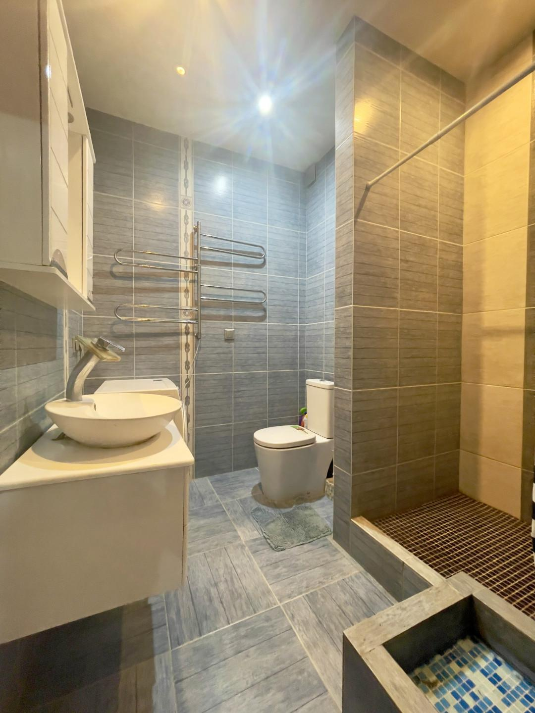 Санузел совмещенный, в нем установлена душевая кабина и отдельная лапомойка для любителей домашних питомцев.