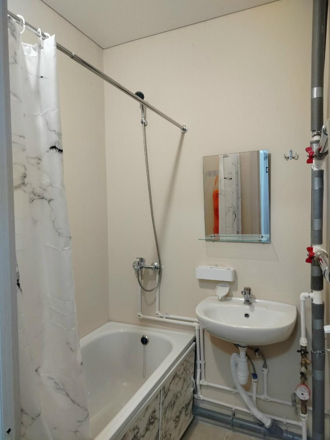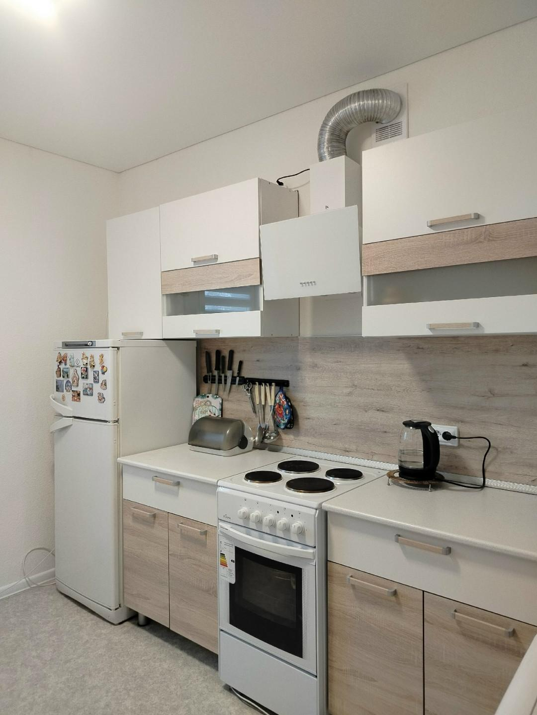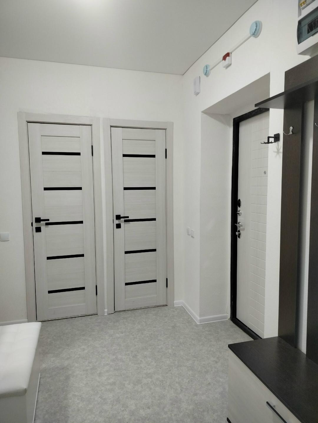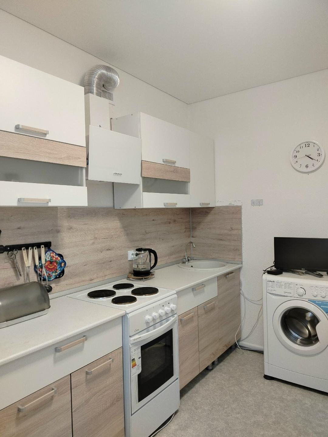 Новая сантехника, пожарная сигнализация, электрическая плита.