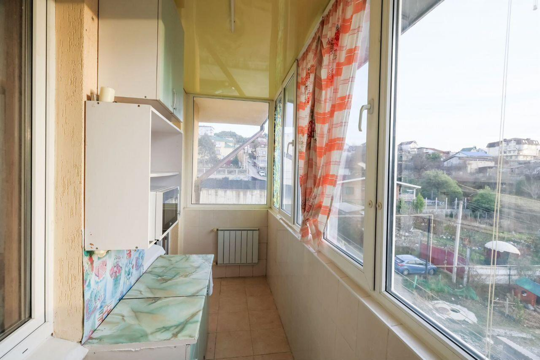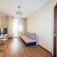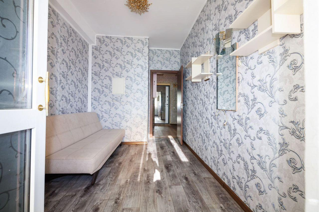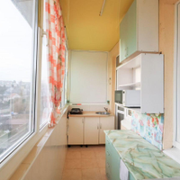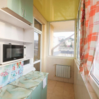 Благодаря большой лоджии, квартира распланирована в полноценную двухкомнатную: гостиная и спальная комната, на лоджии кухонная зона, отдельная гардеробная и санузел.