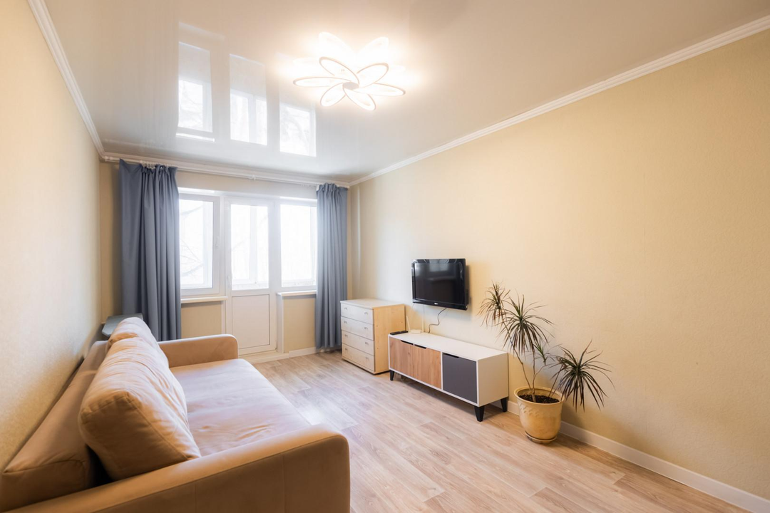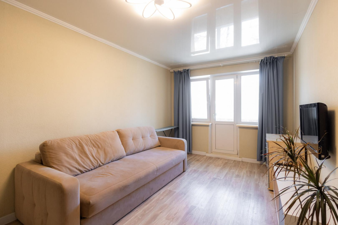 О квартире: Квартира 2-х комнатная, 42.8 кв.м., с удобной планировкой, есть балкон, застеклен пластиковыми стеклопакетами. В квартире сделан качественный ремонт, на полу ламинат, на кухне напольная плитка, в санузле свежий ремонт, заменены все трубы и поставлена новая сантехника. Современный кухонный гарнитур и техника. В комнатах натяжные потолки, поставлены качественные двери. Ремонт в светлых, пастельных тонах. Квартира не требует вложений. Заходи и живи!