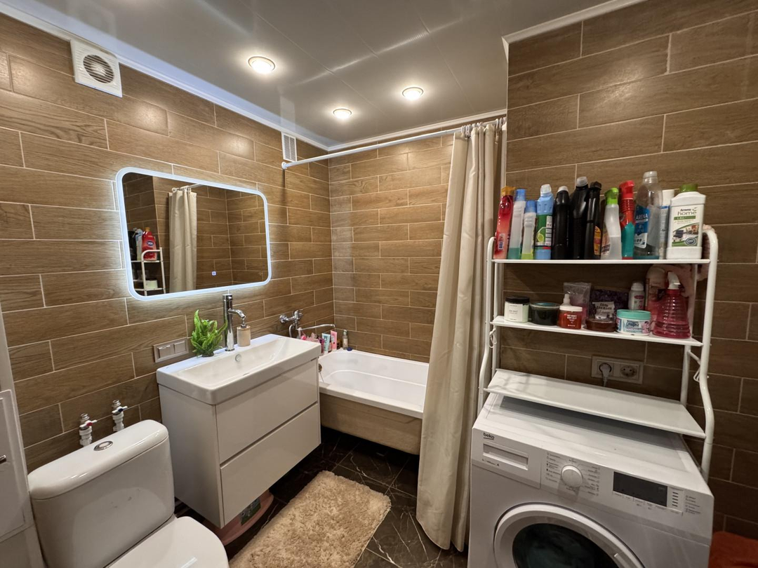 ЗАМЕНЕНО ВСЕ: стяжка полов, прокладка техноплексом для уменьшения шума и дополнительного утепления, ламинат, кафель, выровнены стены, заменена вся сантехника, радиаторы, полностью заменена электропроводка, продуманы розетки, предусмотрено место, розетка и слив под посудомойку, выведены трубы и розетка под бойлер, натяжные потолки, везде стоят пластиковые стеклопакеты.