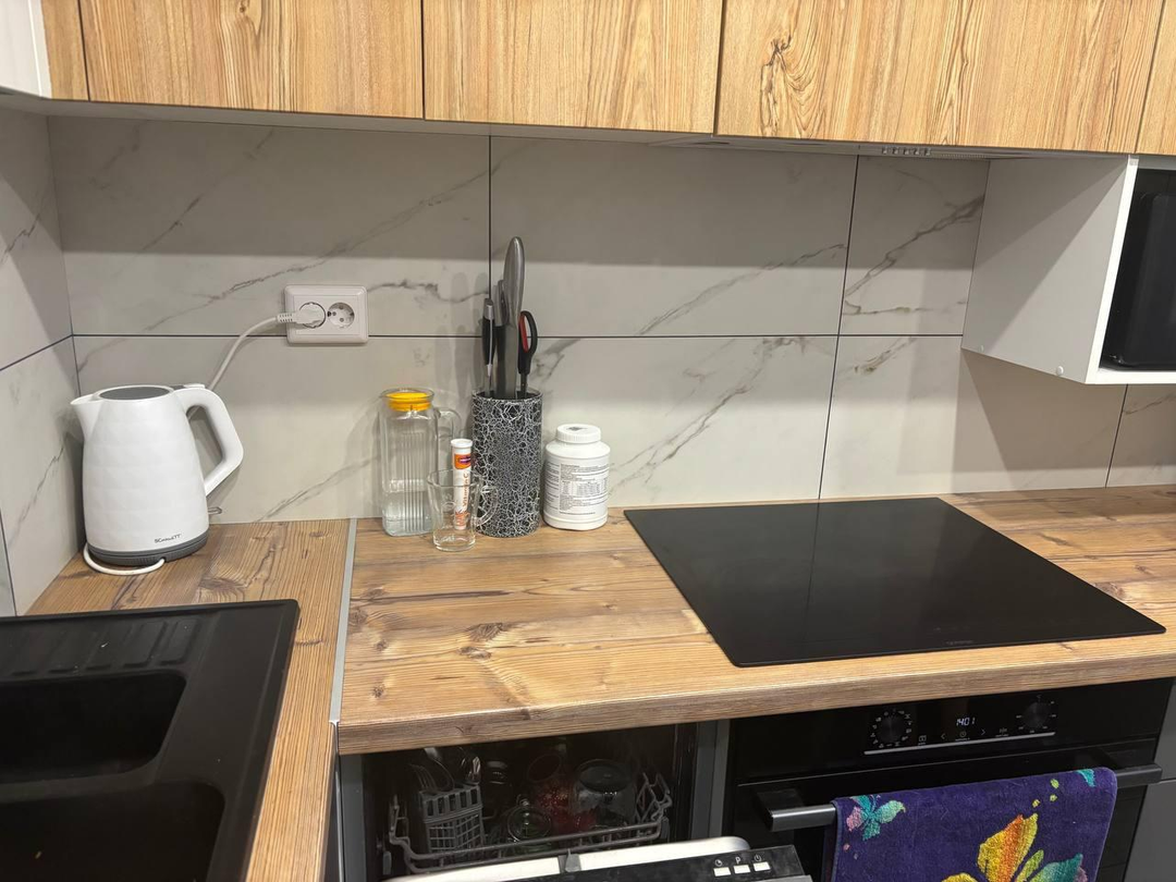- в квартире остается кухня, со всей встроенной техникой: посудомойка, варочная панель и духовой шкаф.