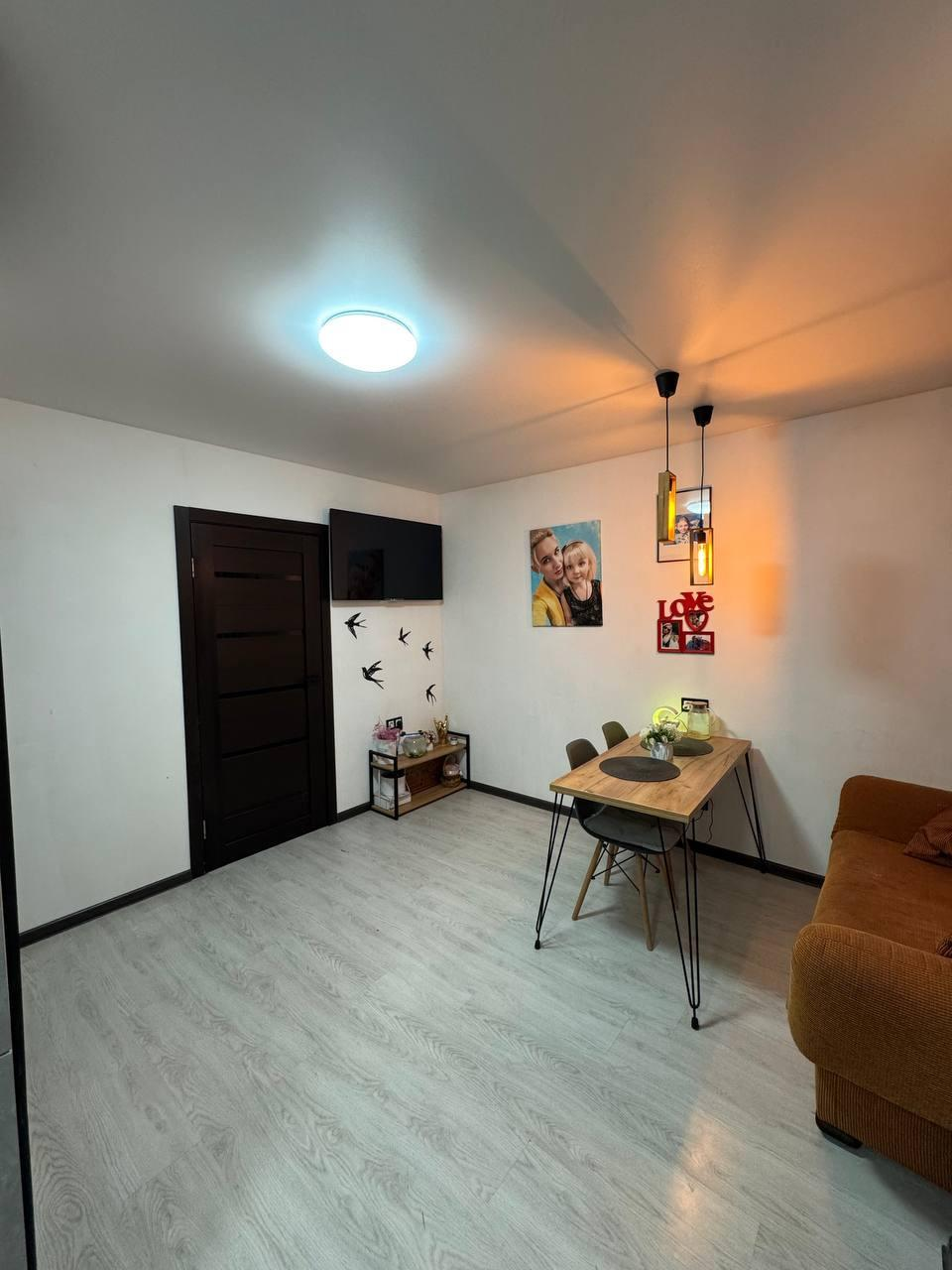 Квартира имеет изолированные комнаты и удобный санузел, делают планировку удобной для семьи с ребенком или сдачи в аренду. Особого внимания заслуживает кухня совмещенная с гостиной — здесь с легкостью поместится обеденная зона для приема гостей.