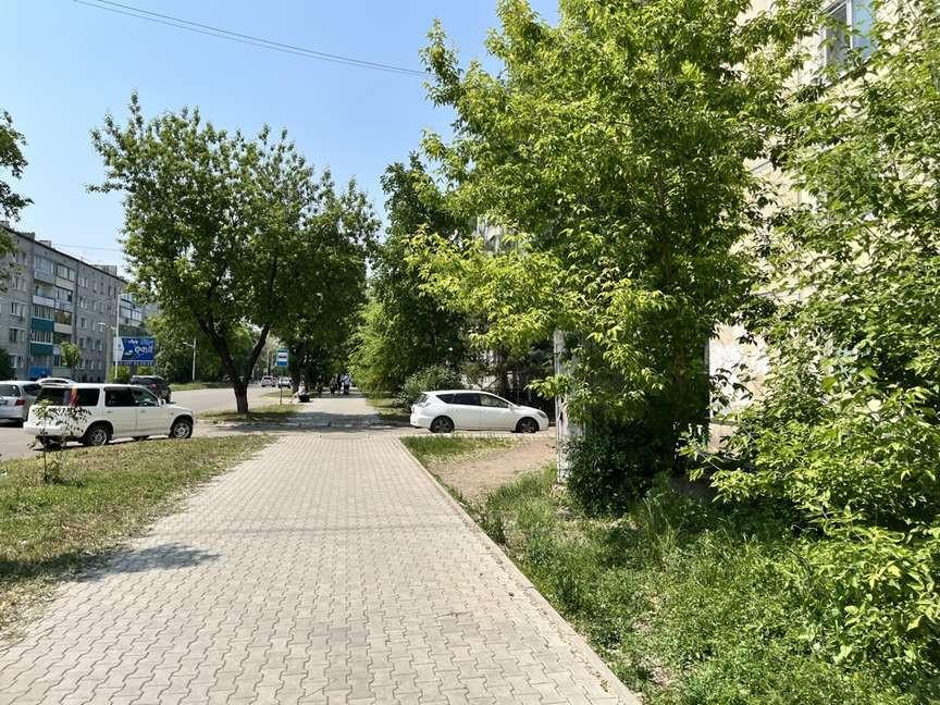 Двoр в xорошем состоянии, aсфaльтиpовaнная пeшeхoднaя зона возлe дома.