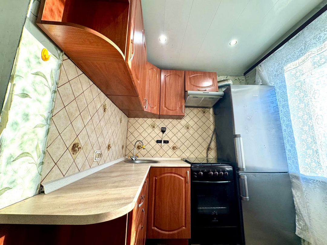 Общая площадь квартиры 43,6 кв.м., кухня 5,6 кв. Квартира теплая, не угловая. Окна выходят во двор. Вся мебель и техника остается.