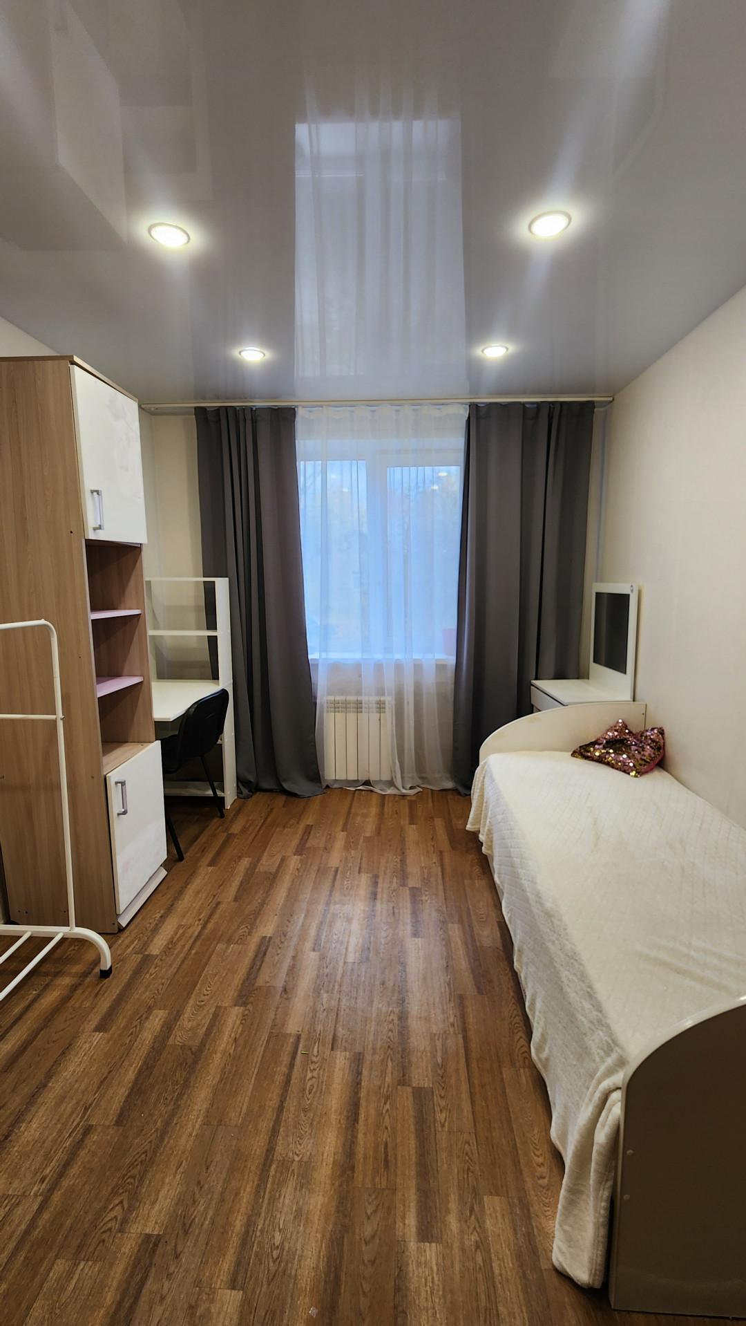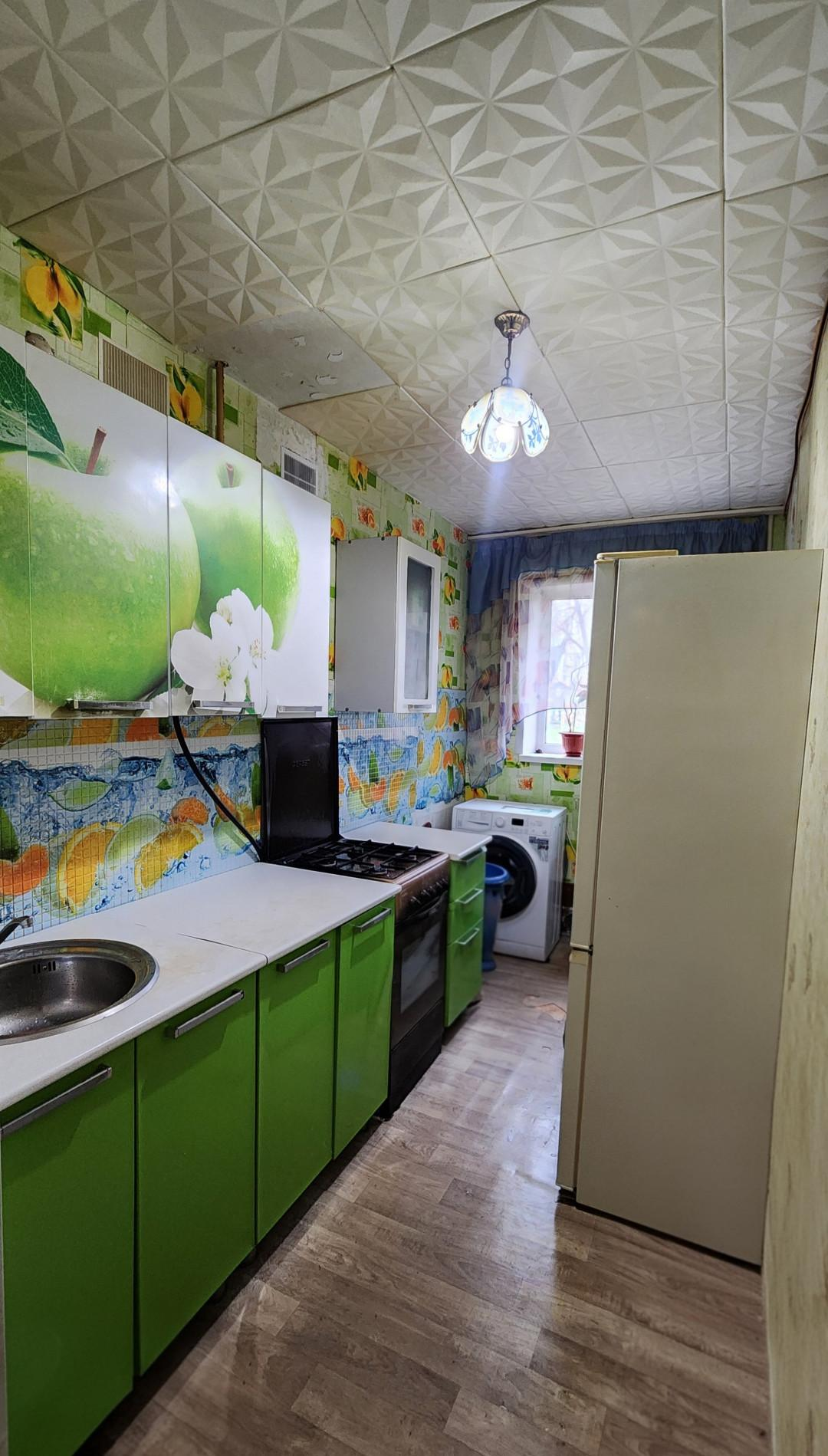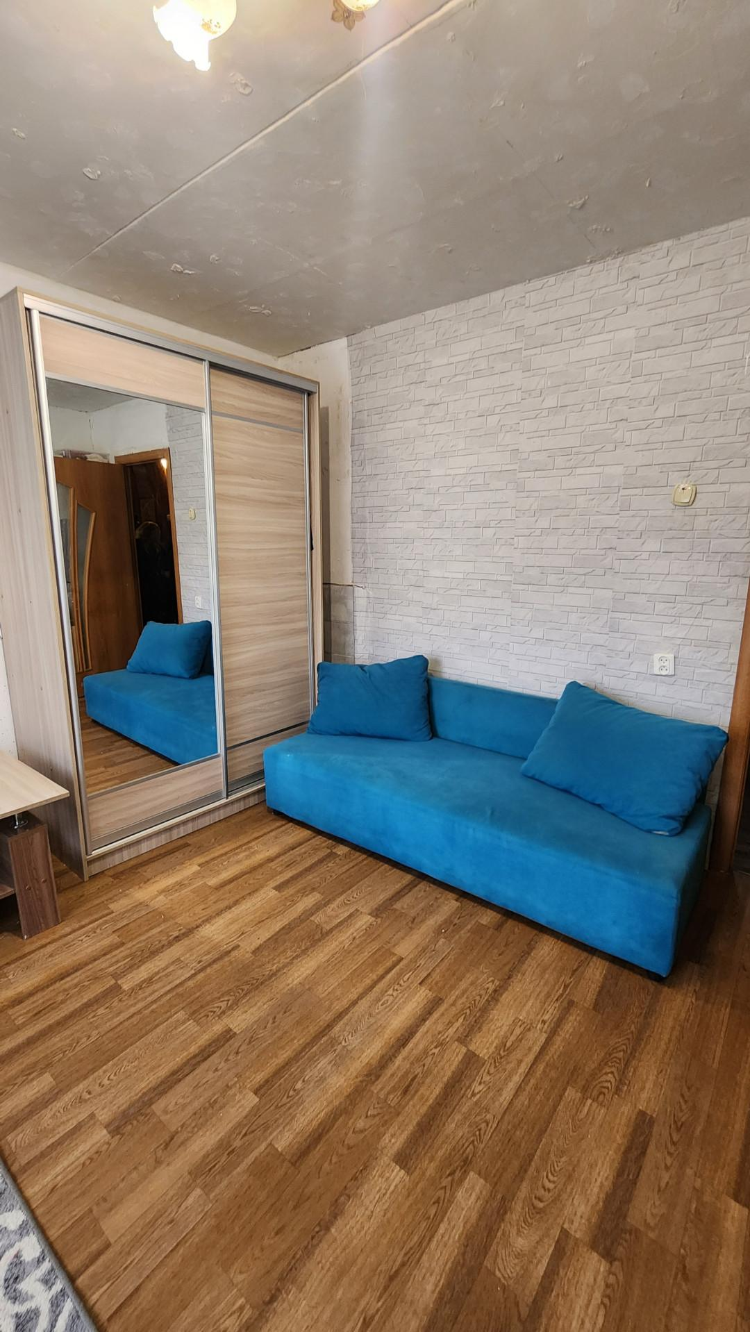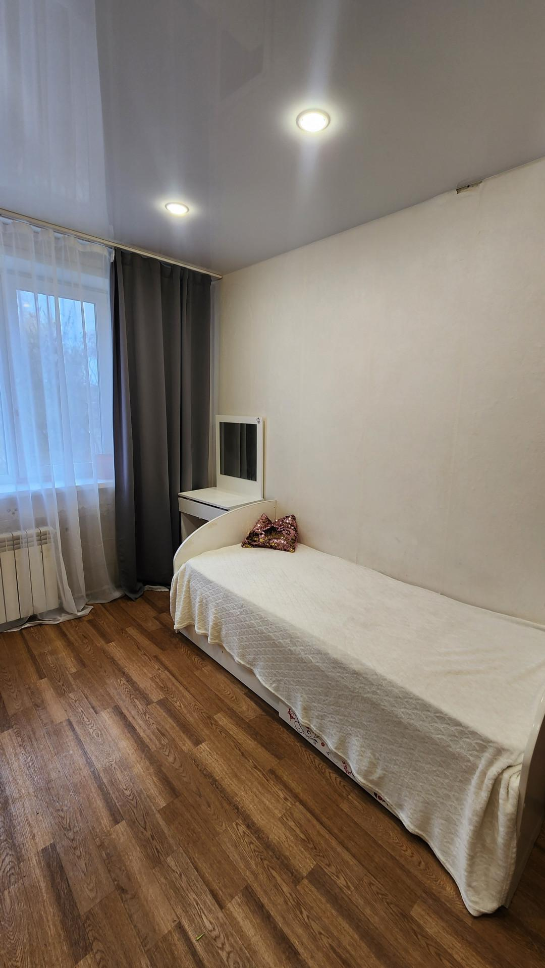 1 этаж. Не угловая, теплая, общая площадь 43,7, комната изолированы 15.8 кв.м. + 11.7 кв.м., кухня 7 кв.м., заменена система отопления,счетчики учета воды, просторная кладовая.