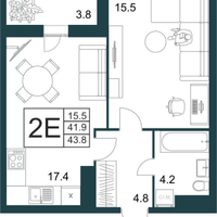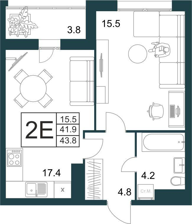 43,8 м²