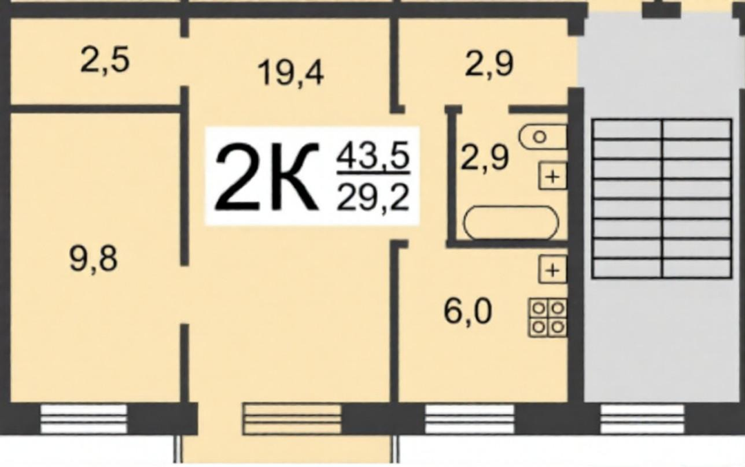 2-к. квартира, 43 м²