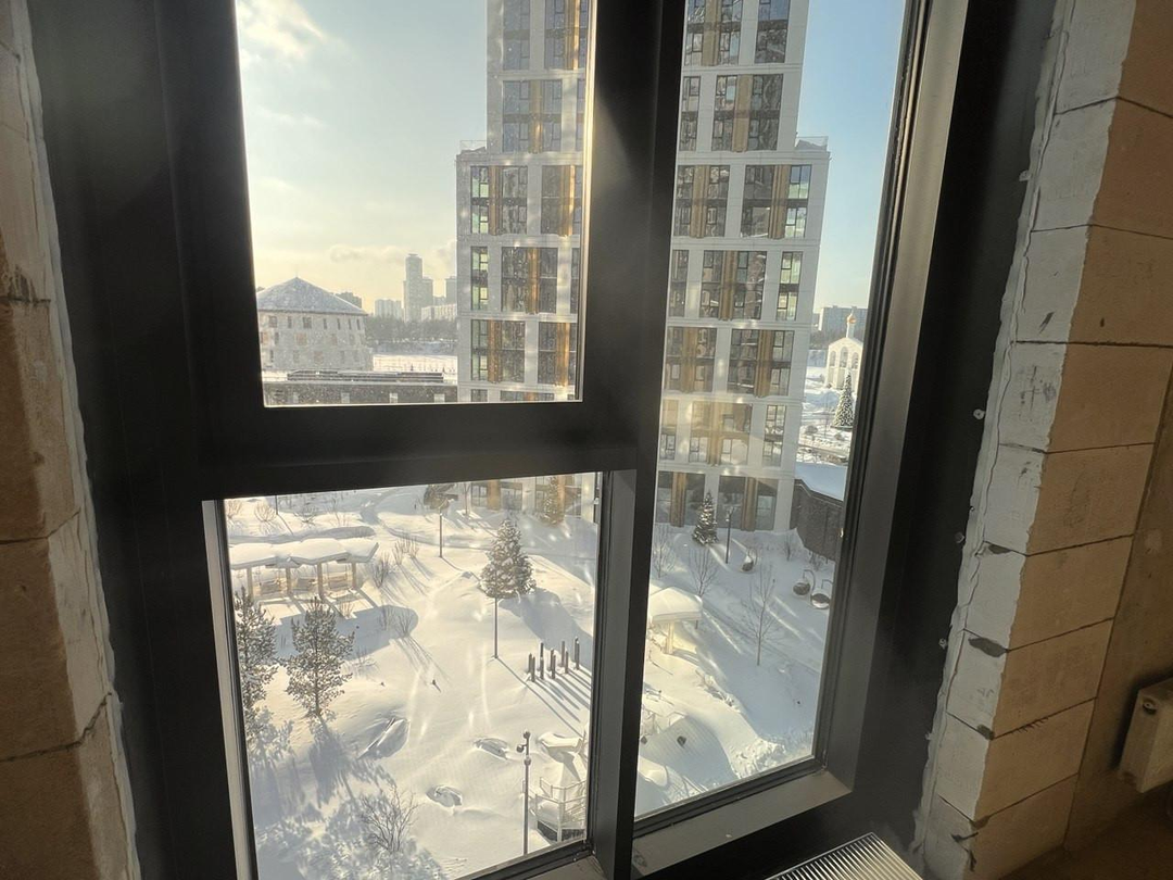 Квартира видовая. Окна панорамные выходят на юго-западную сторону и смотрят в тихий, благоустроенный двор дома, прямо на фонтан, и на набережную р.Москва, на часовню и Владимирский храм, а также на Башню Культурного центра.