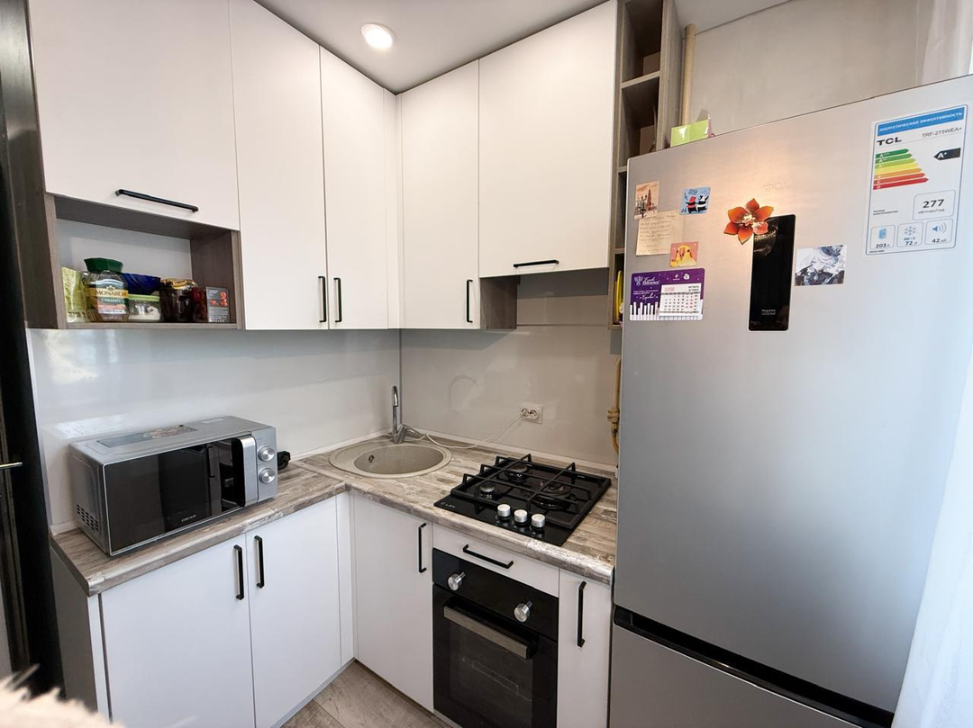 О квартире:планировка смежная, окна выходят на обе стороны домасанузел раздельныйв квартире свежий евроремонт, с заменой проводки, водяных стояков и стояков отопления, пол выровнен половой влагостойкой фанерой и застелен ламинатомвстроенный кухонный гарнитурбалкон остеклен, обшит, выведено освещение