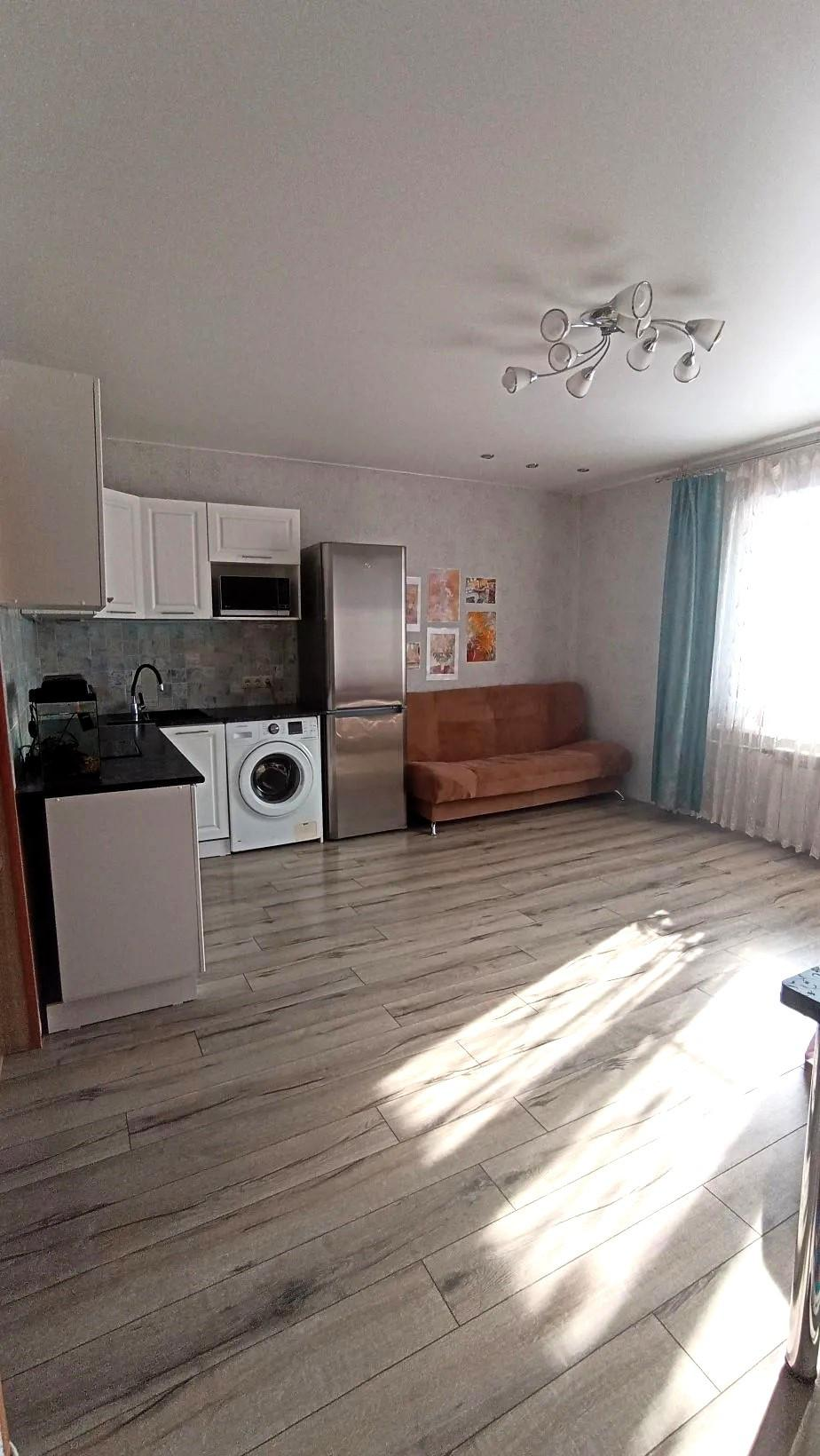 Двухкомнатная студия с большой кухней-гостиной (22,6 квадрата) и компактной спальней (10,6 квадратов)