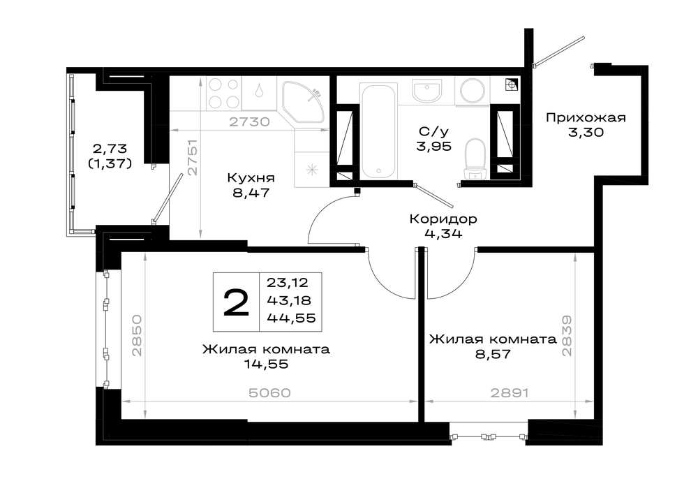 Продается полноценная 2х комнатная квартира в новом современном жилом комплексе!
