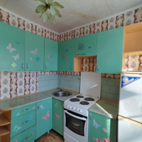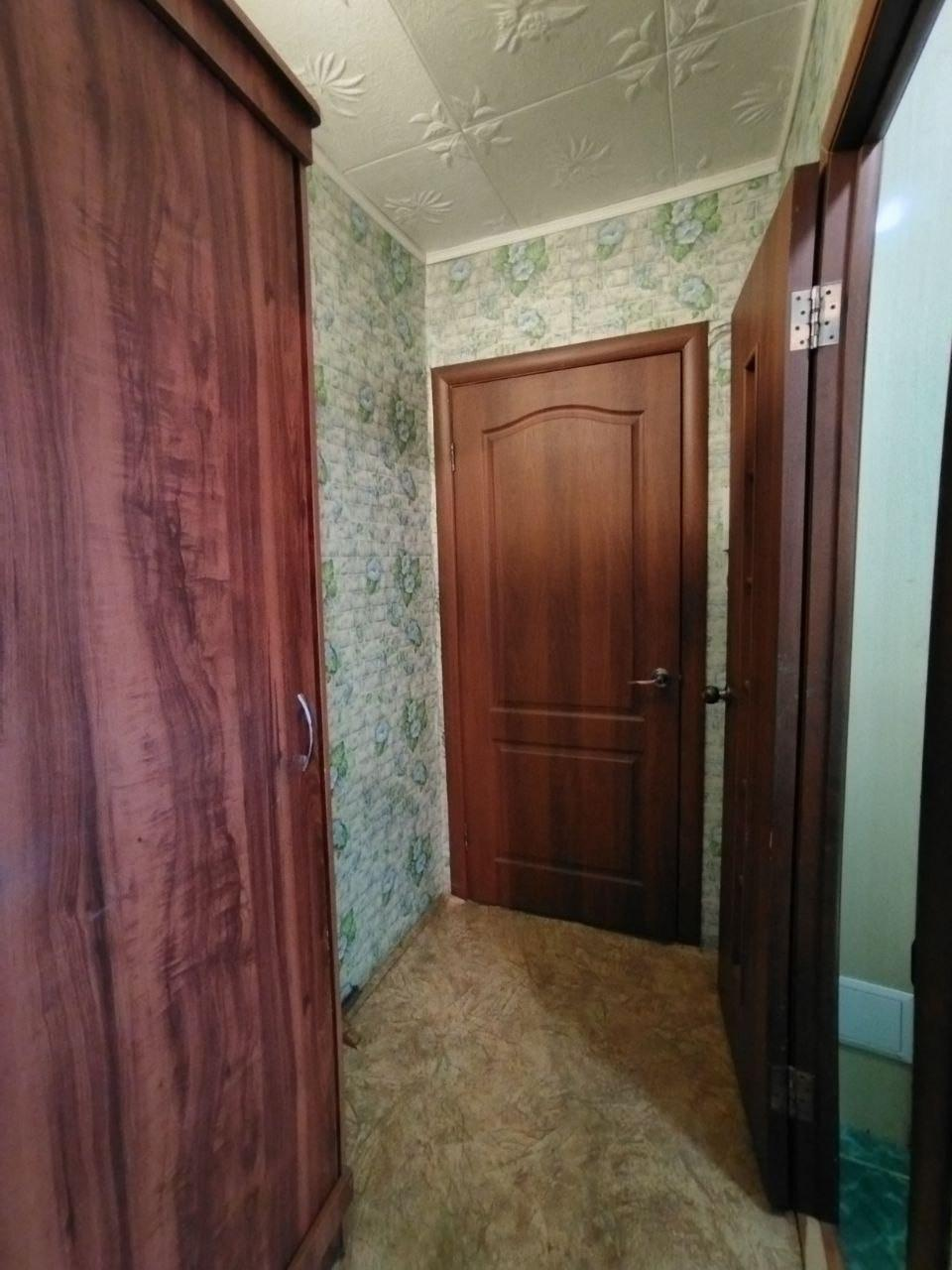 Квартира полностью готова к проживанию. Сделан аккуратный косметический ремонт:Санузел совмещенный, отделан кафелем — практично и чисто.В спальне встроенный шкаф-купе — удобное решение для хранения, не нужно загромождать комнату.Межкомнатные двери в хорошем состоянии.На кухне остается гарнитур — приятно).Балкон остеклен (дерево).