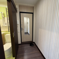 Установлен кондиционер, заменены все окна. В спальне есть встроенный шкаф — дополнительное место для хранения. Остекленный балкон, есть полки и ящики.