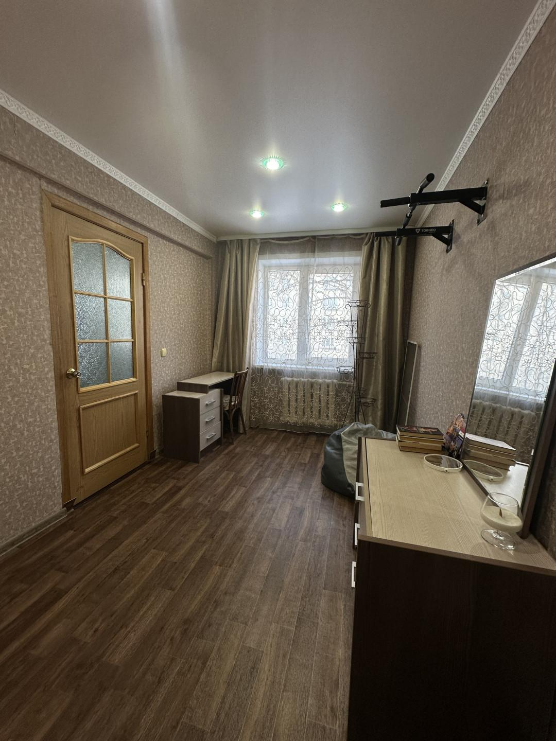 В квартире выполнен косметический ремонт- окна пластиковые, балкон застеклен, напольное покрытие-линолеум, стены, потолки выровнены, с/у-кафельная плитка, натяжные потолки в кухне и комнате..