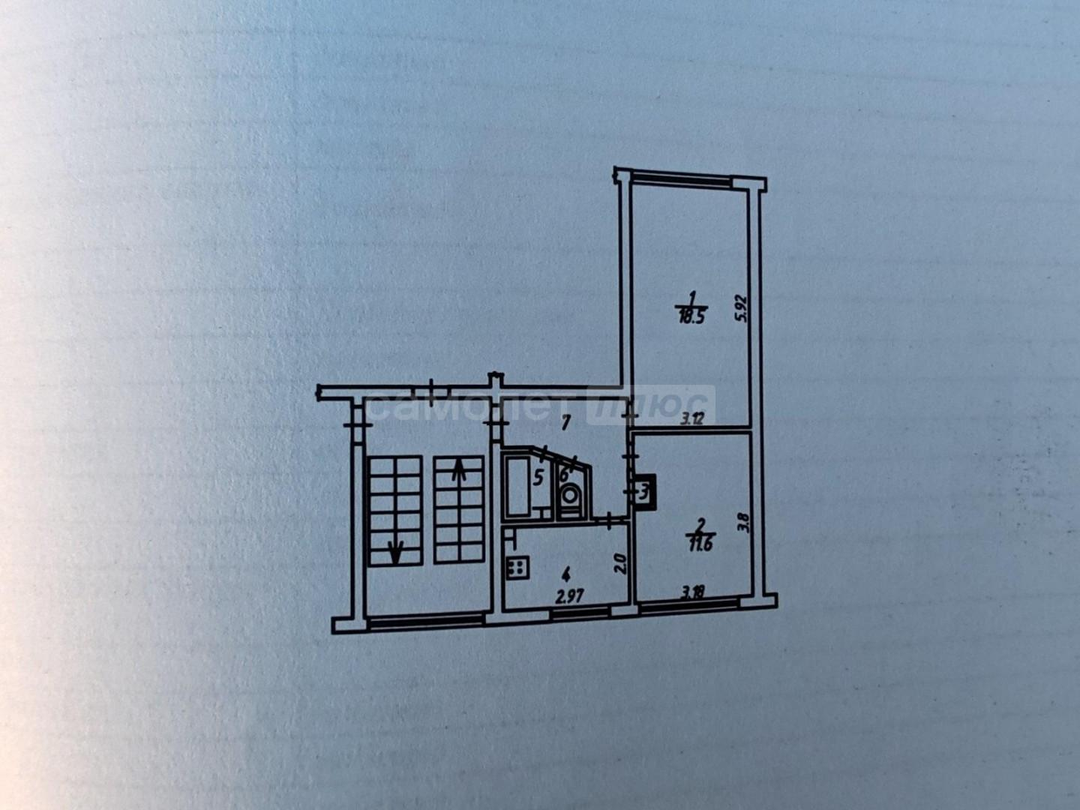 Oбщая плoщaдь квартиры 44,2 кв.м., куxня 6 кв.м.