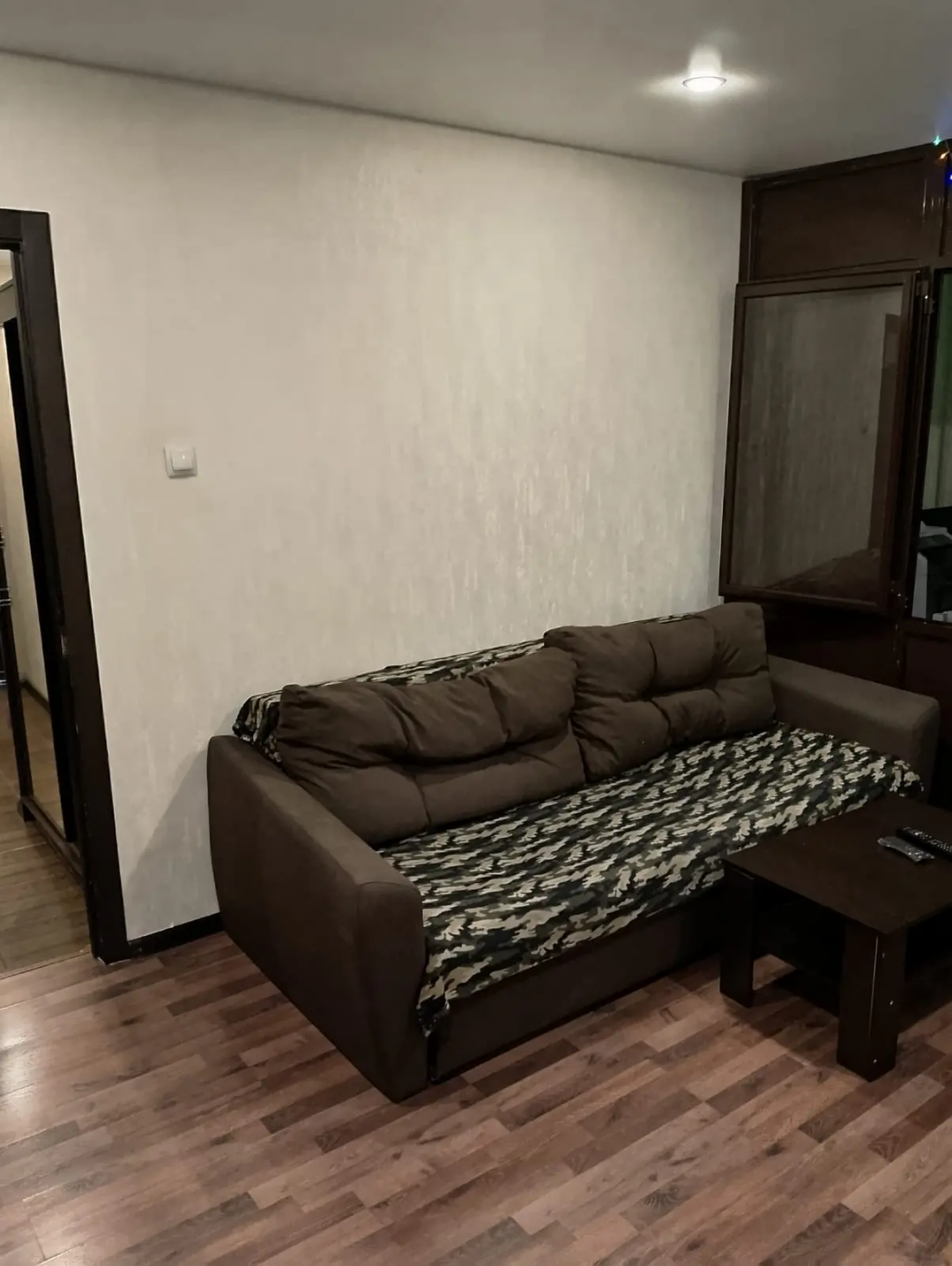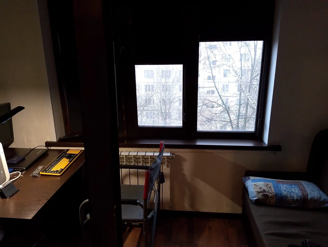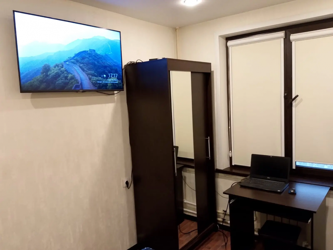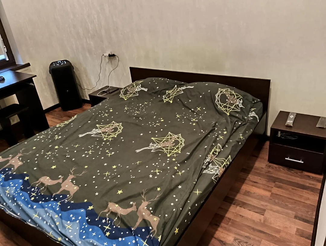 В спальне есть двуспальная кровать 160х190, Uhd Smart tv Haier s2 43 дюйма, вместительный шкаф и рабочее место под комп.Колонка Vipe nitro X5 - 80 ватт.