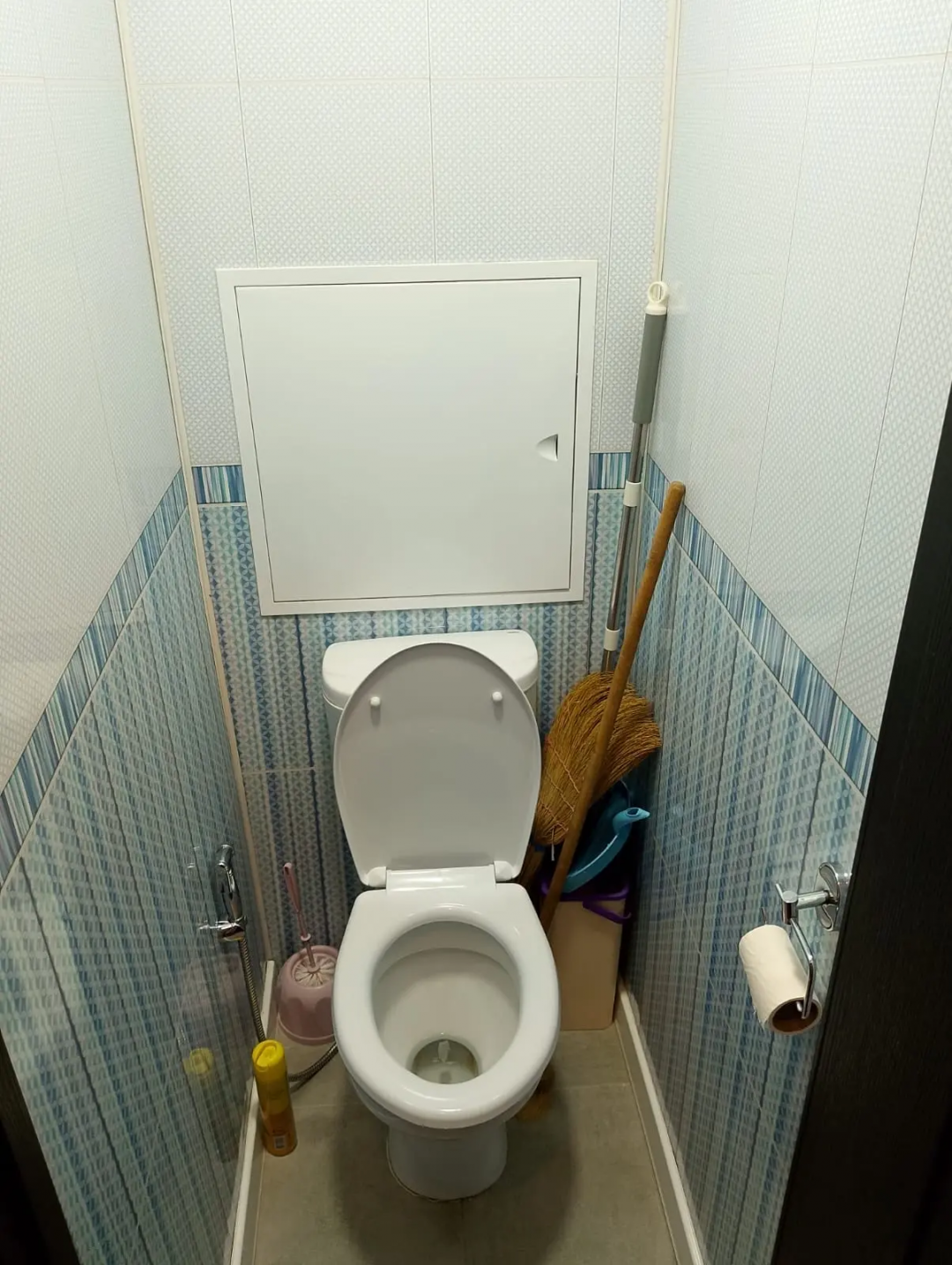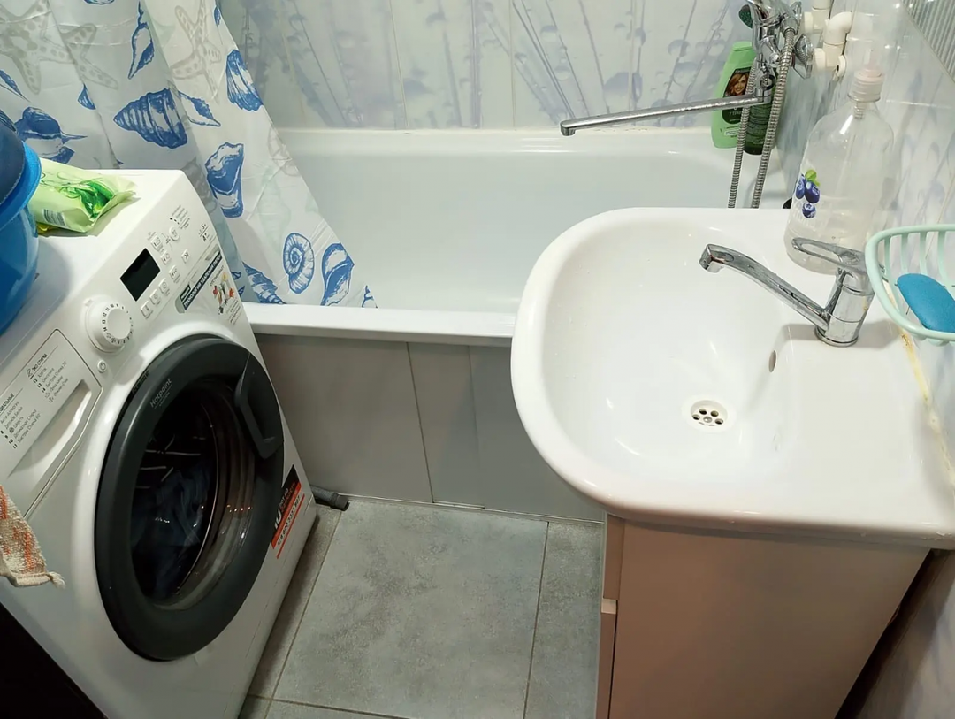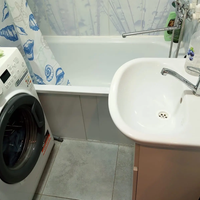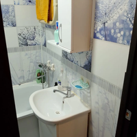 Санузел раздельный, выполнен в светлых тонах. Стиральная машинка Hotpoint Ariston в наличии.