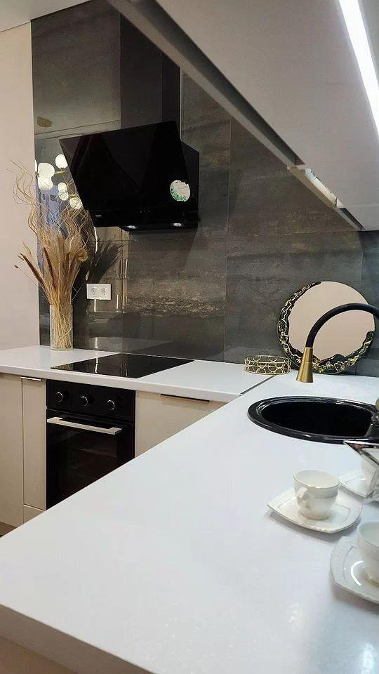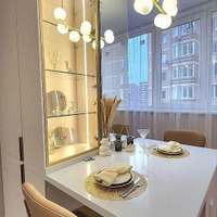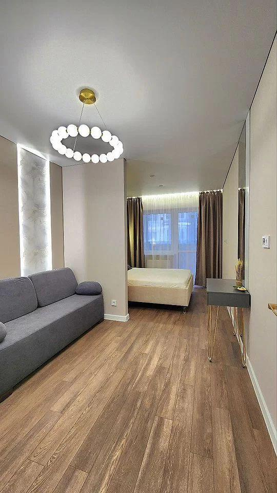 Общая площадь позволяет разместить просторную гостиную с зоной отдыха и обеденной зоной, а также отдельную спальню с уютным уголком для отдыха. Современная кухня оснащена встроенной техникой и выполнена в стильном минималистском стиле, что делает приготовление пищи приятным и удобным.