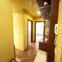 В квартире есть балкон, совмещенный санузел с тёплым полом, отделка — кафель, заменены все стояки, трубы и проводка, установлены новые радиаторы отопления, окна — ПВХ, на полу уложен ламинат, который придаёт помещению тёплый и современный вид.