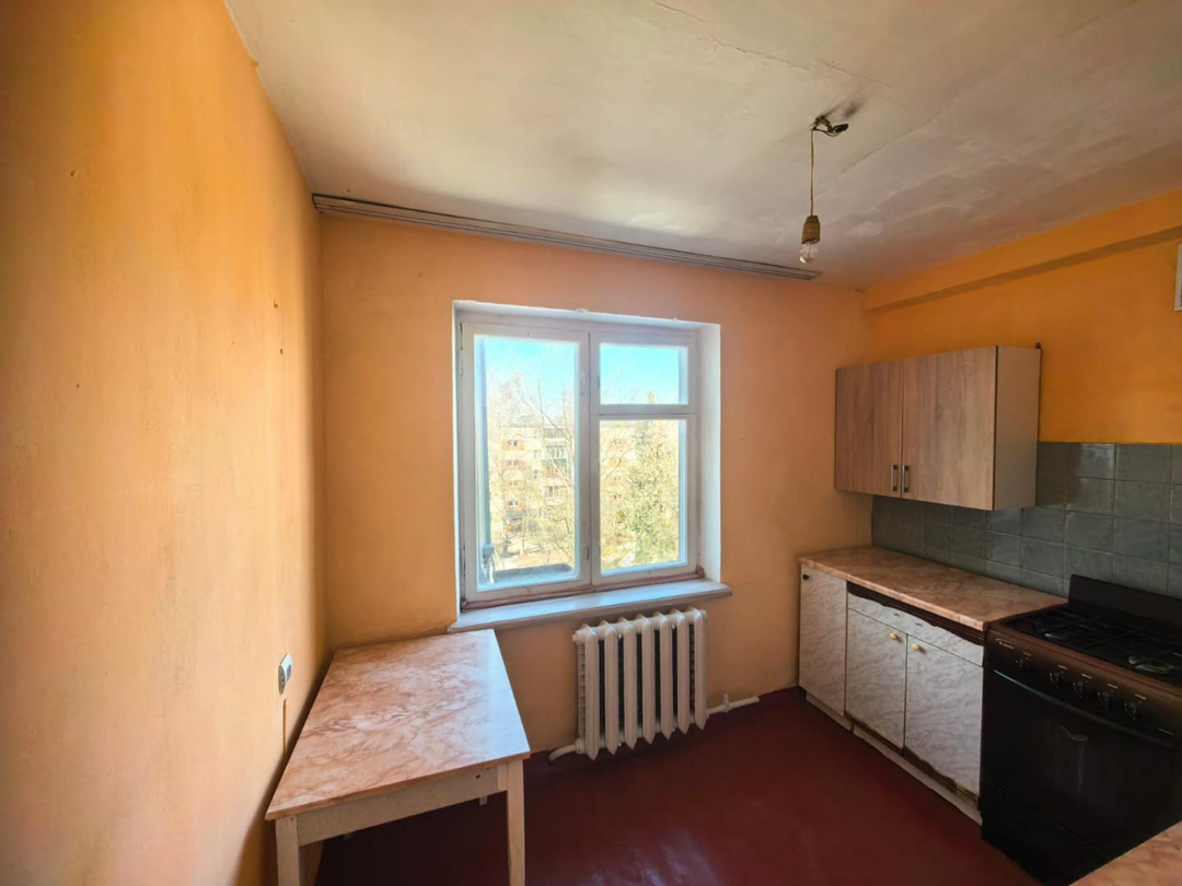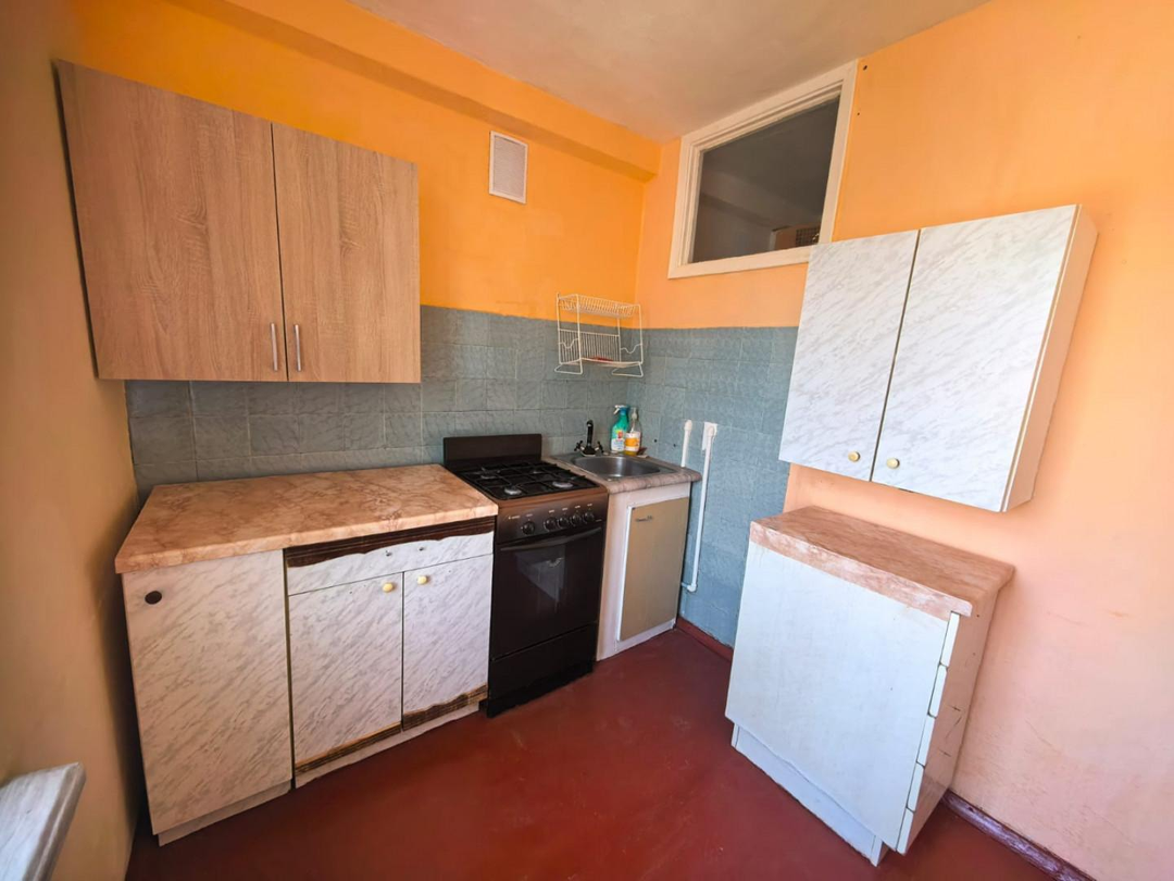 · Кухня: 7 м² с газовой плитой, вид во двор.